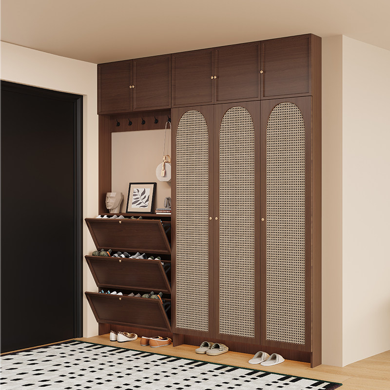 为您提供商品中古超薄翻斗鞋 胡桃木挂衣架一体玄关 柜家用门口藤编收纳柜加高款的详细介绍,
