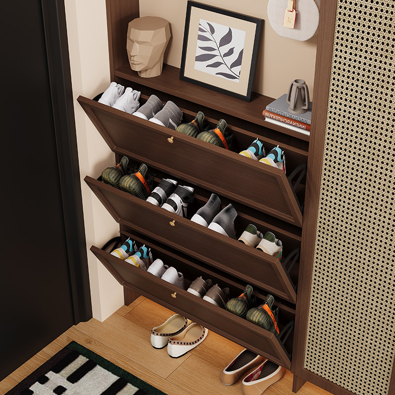 中古超薄翻斗鞋 胡桃木挂衣架一体玄关 柜家用门口藤编收纳柜加高款由