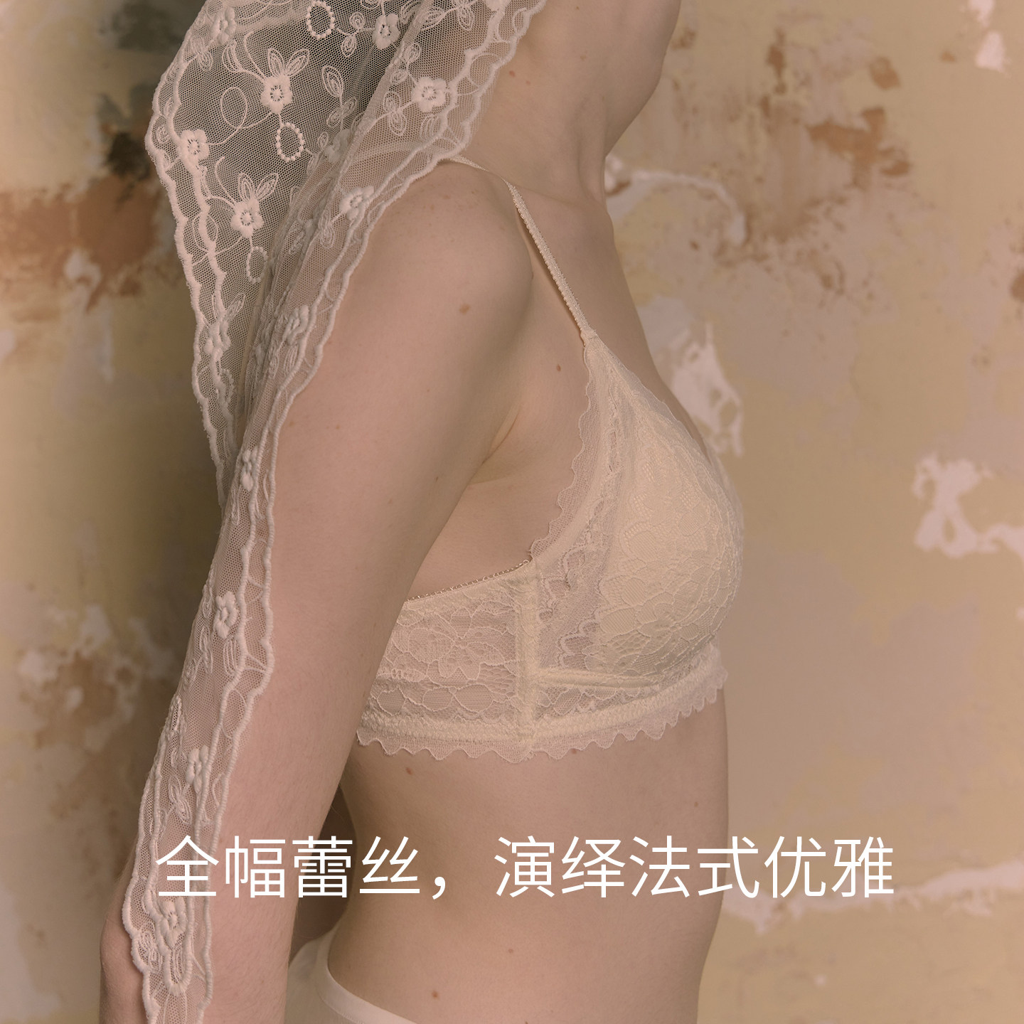 莫奈礼物法式 蕾丝美背内衣女士小胸薄款 无钢圈性感文胸 小花园由