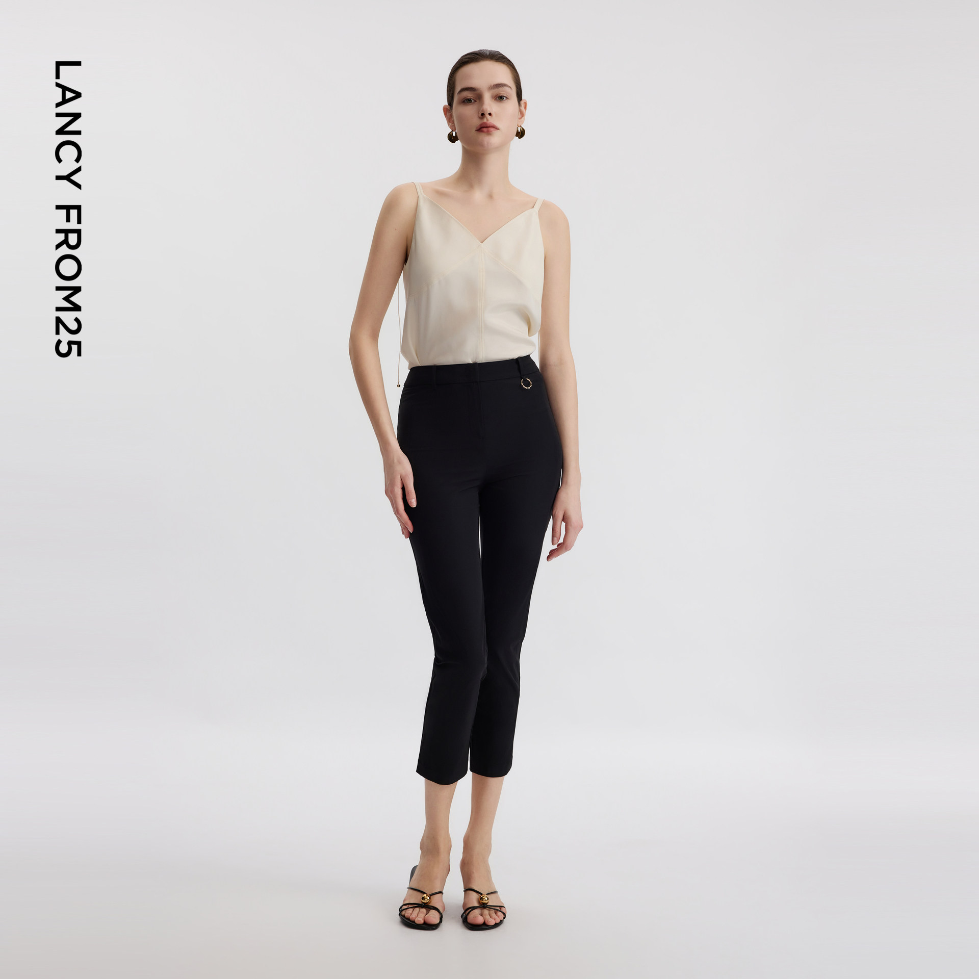 裤 高腰西装 显瘦休闲烟管裤 子 新款 黑色裤 女夏季 朗姿职业通勤修身由