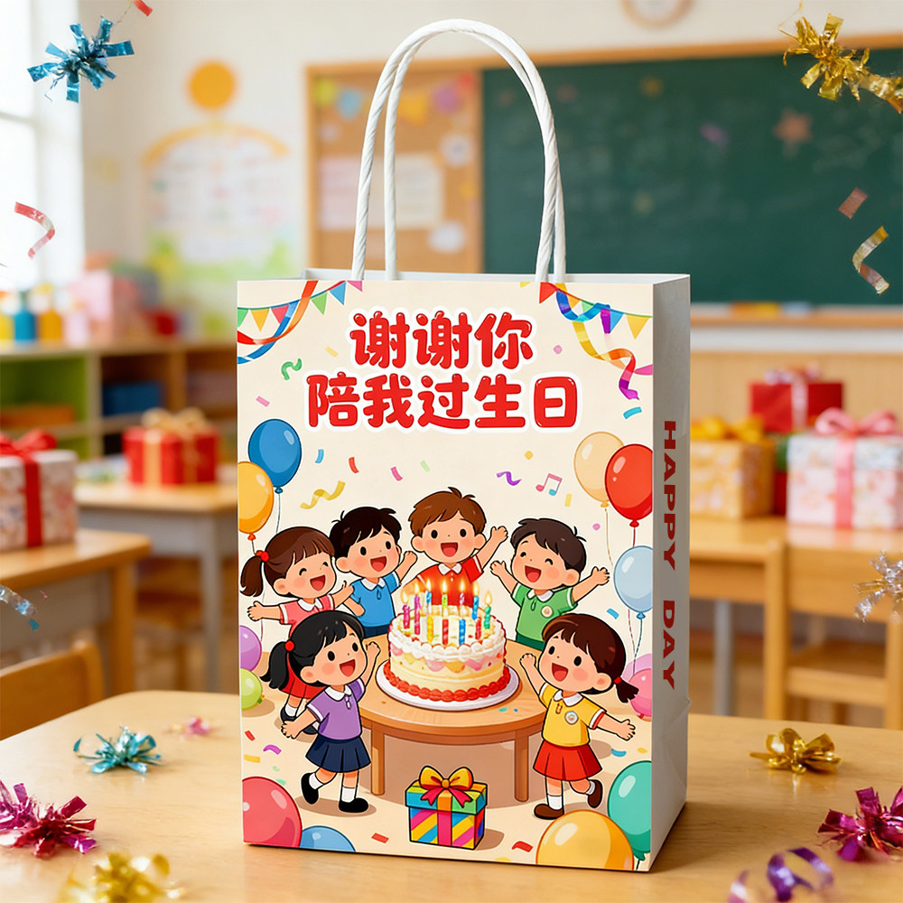 袋伴手礼袋 谢谢你陪我过生日手提礼品袋卡通牛皮纸袋生日礼品包装