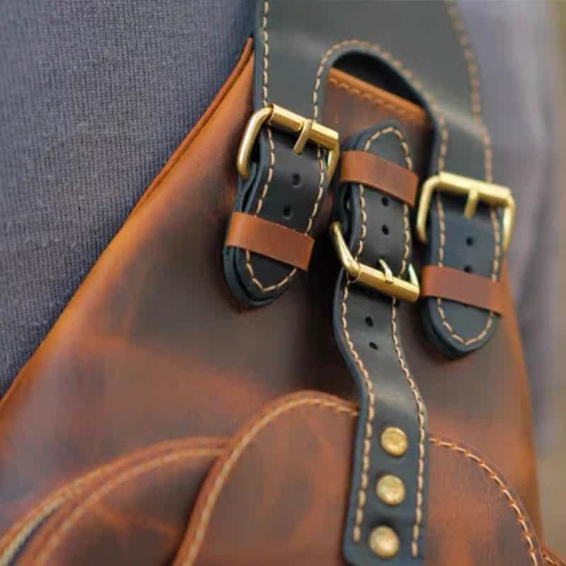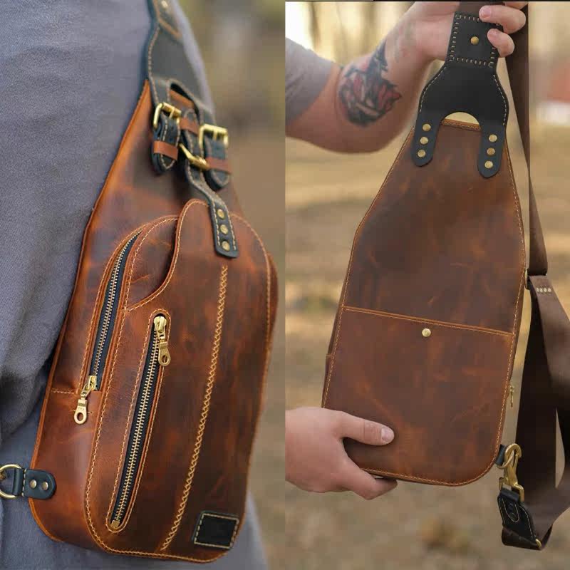 GAOYI植鞣牛皮斜挎包手工擦色背包单肩包真皮男包休闲潮流胸包潮
