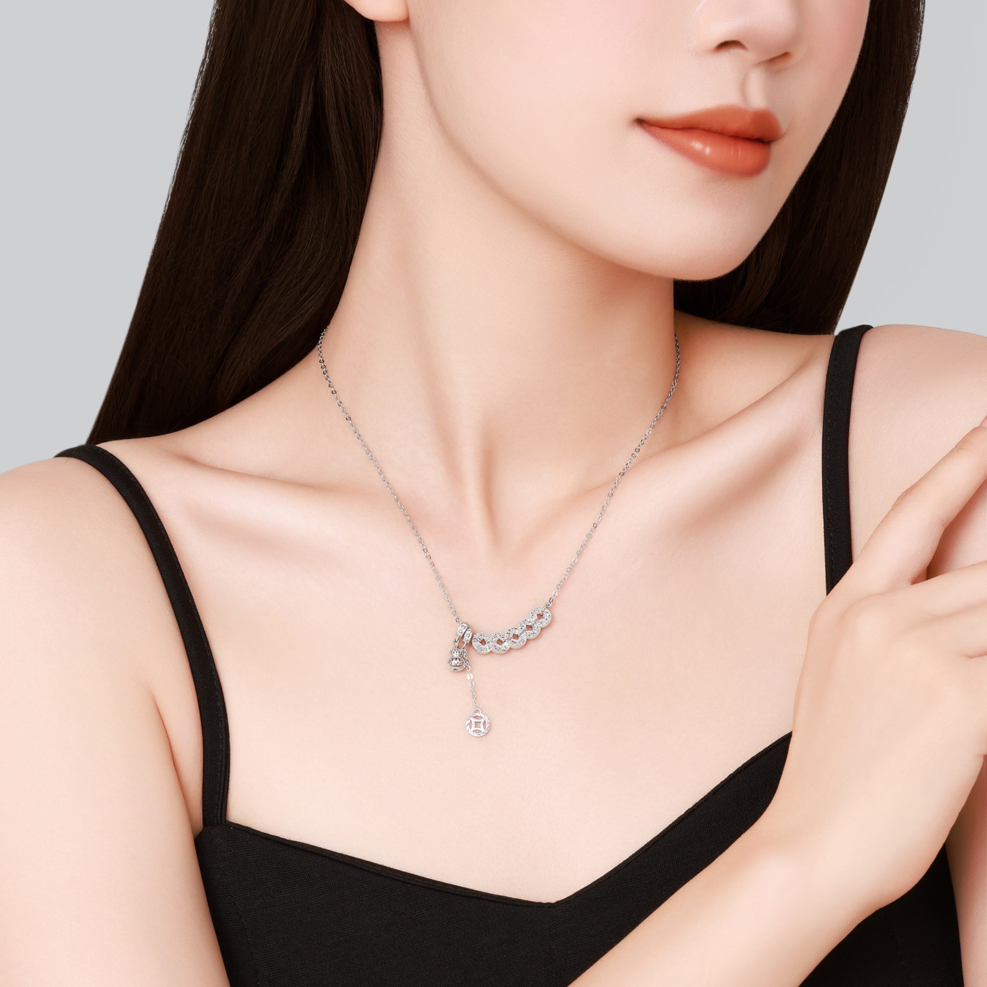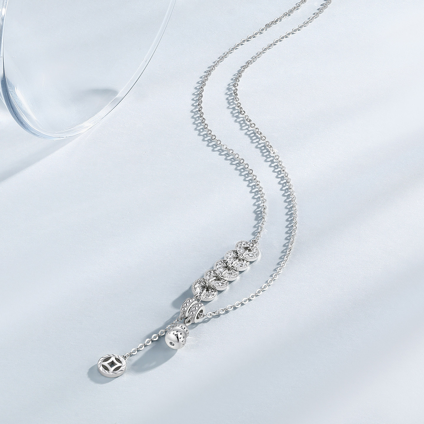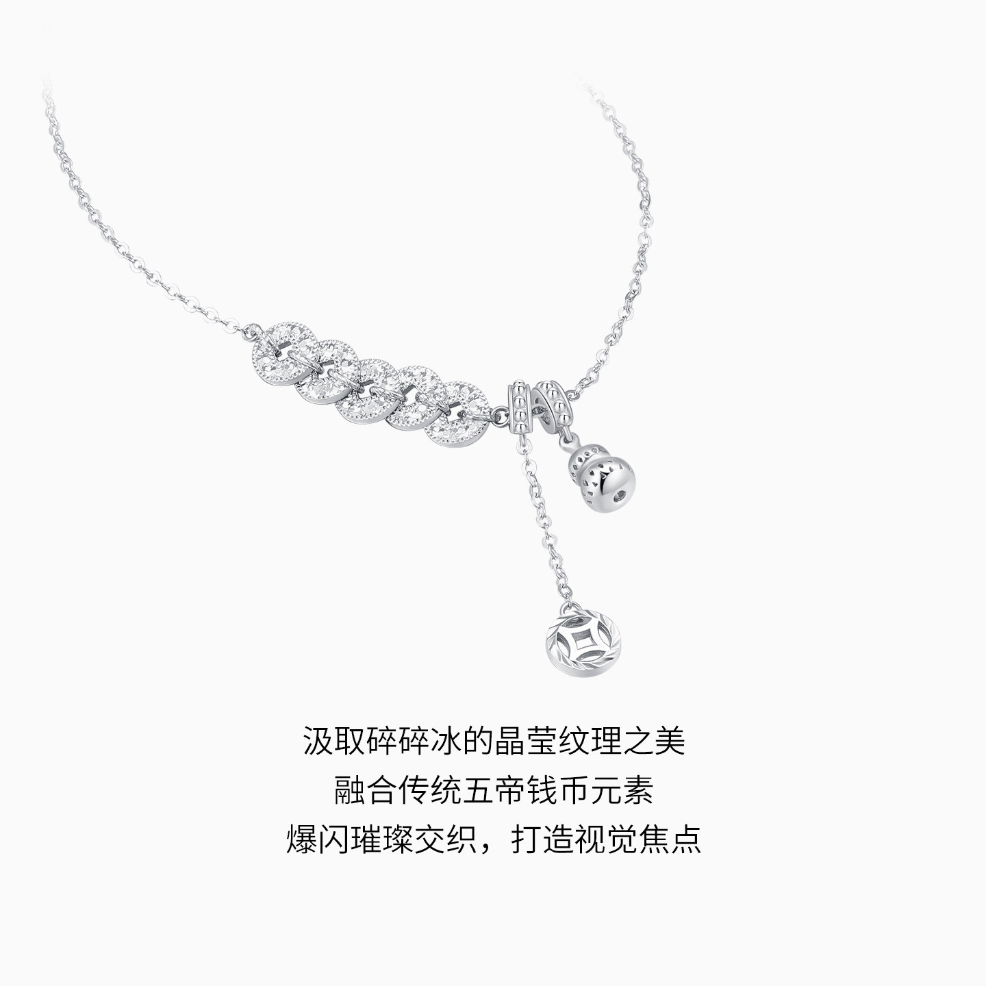 潮宏基爆闪碎碎冰五帝钱币铂金项链PT950坠链套链钱币生日礼物