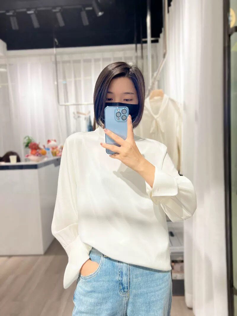 2023早春新款 衬衫 桑蚕丝缎面半高领法式 简约衬衣 重磅真丝净色长袖