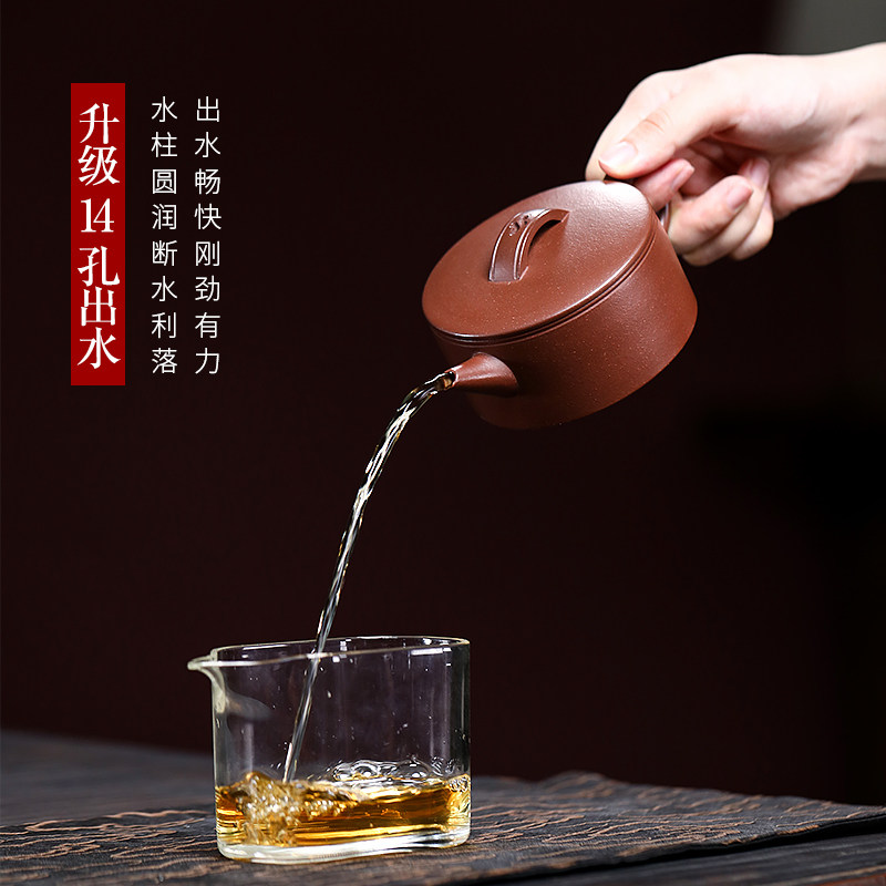 名壶秋月大口汉瓦200cc名家全手工宜兴紫砂壶原矿老紫泥功夫茶具由
