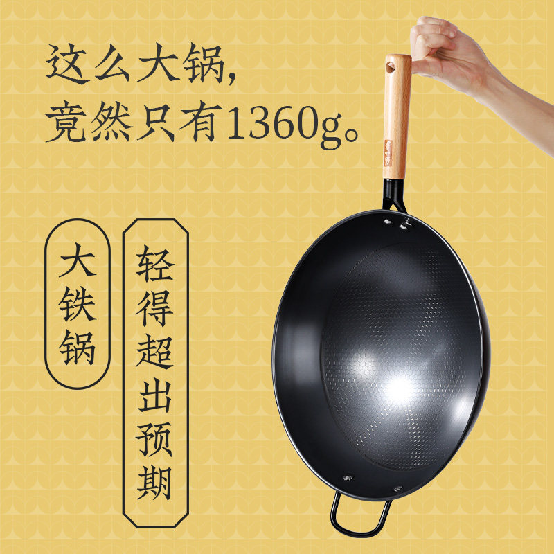 张小泉大铁锅32cm34cm36炒锅炒菜锅40精铁炒锅无涂层铁锅做饭锅