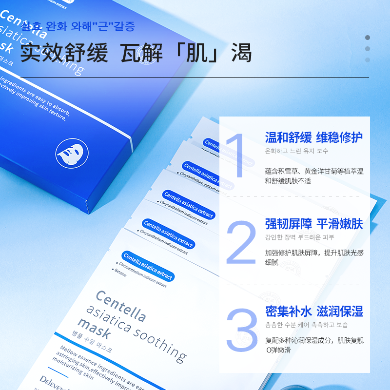 为您提供商品韩国进口面膜积雪草晒后舒缓修护敏感泛红补水保湿 紧致女官方正品的详细介绍,