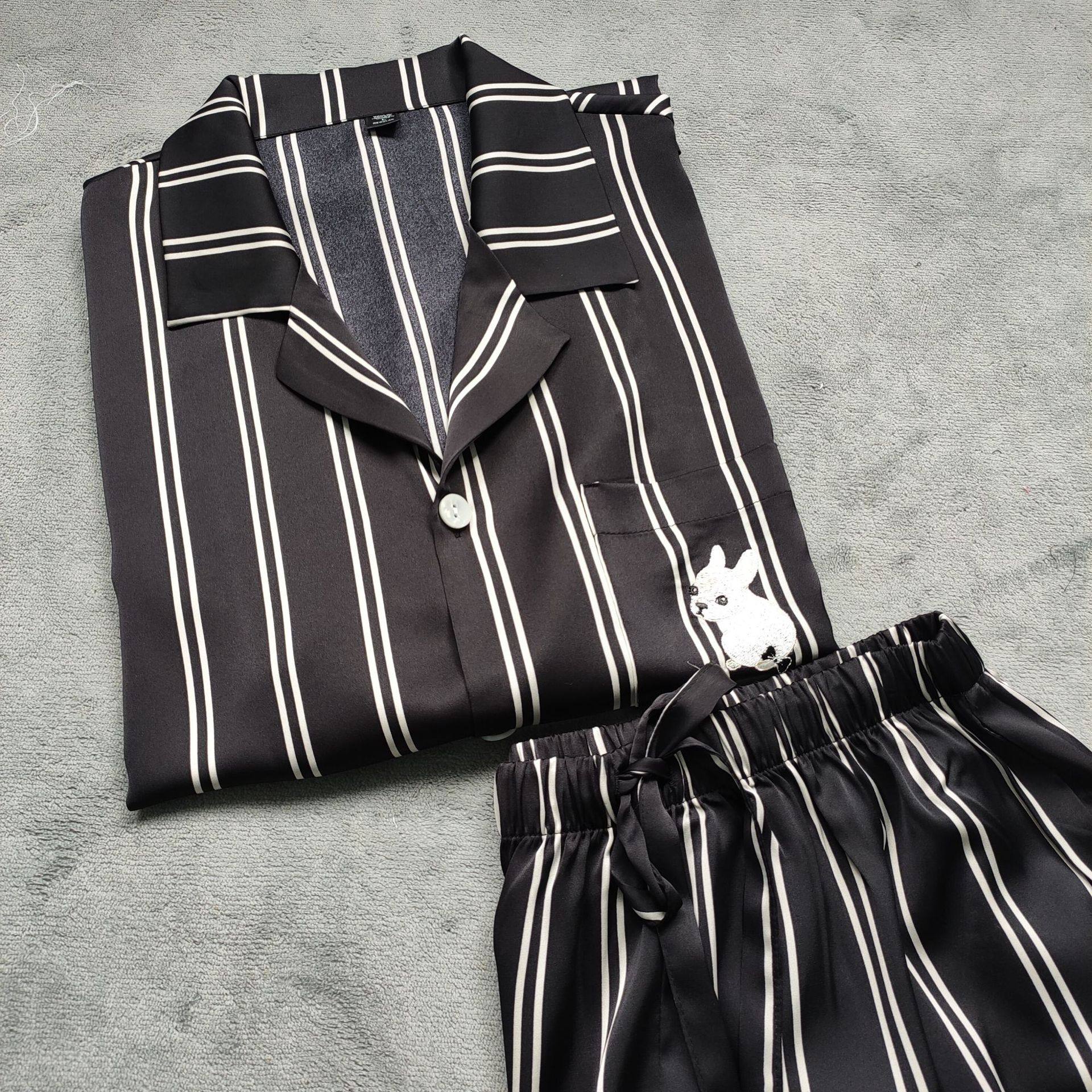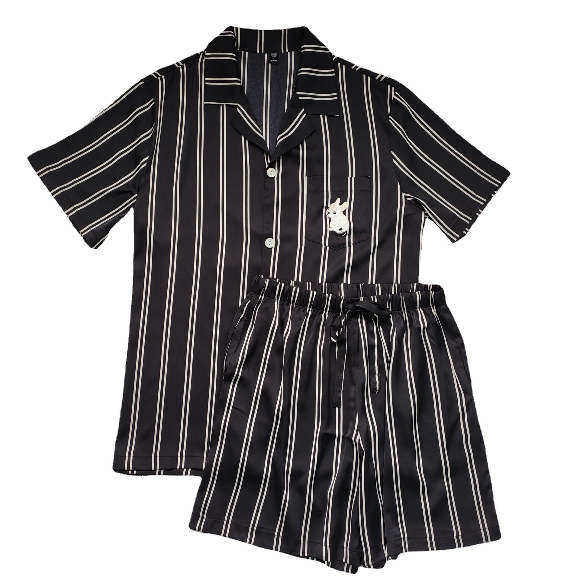条纹睡衣家居服套装 冰丝零触感 裤 短袖 新男女动物刺绣夏季 薄款