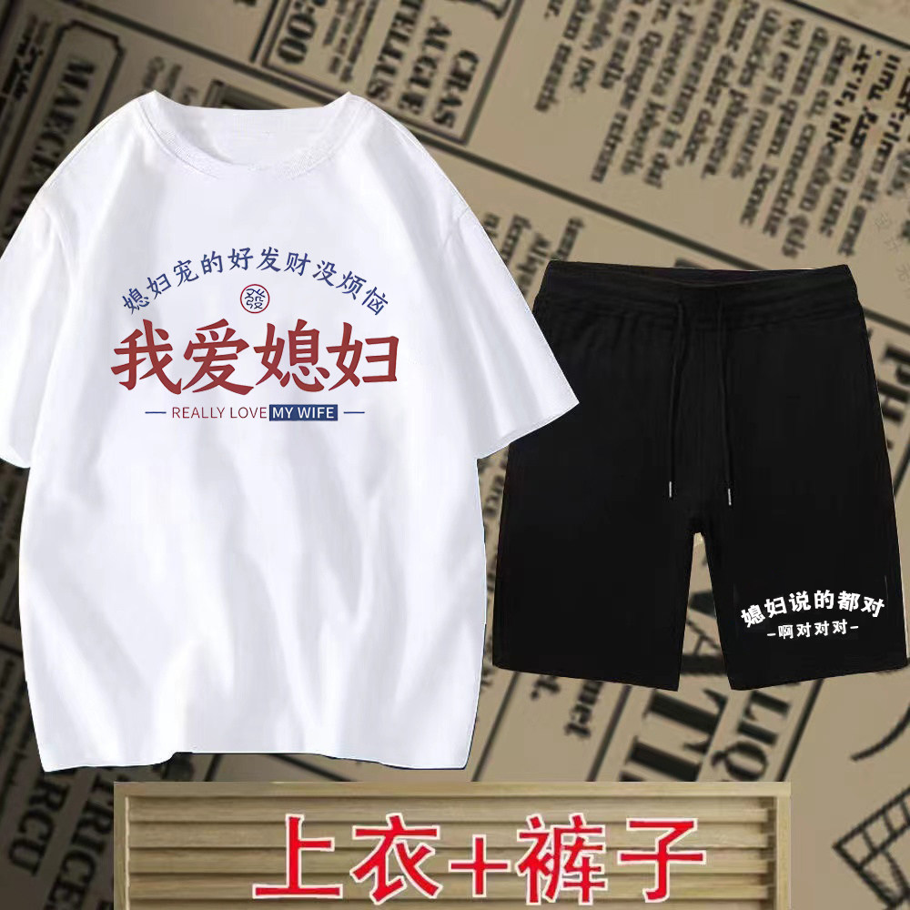为您提供商品短裤 夏季 爆款 国潮我爱媳妇我爱老婆短袖 复古趣味创意上衣t恤 套装的详细介绍,