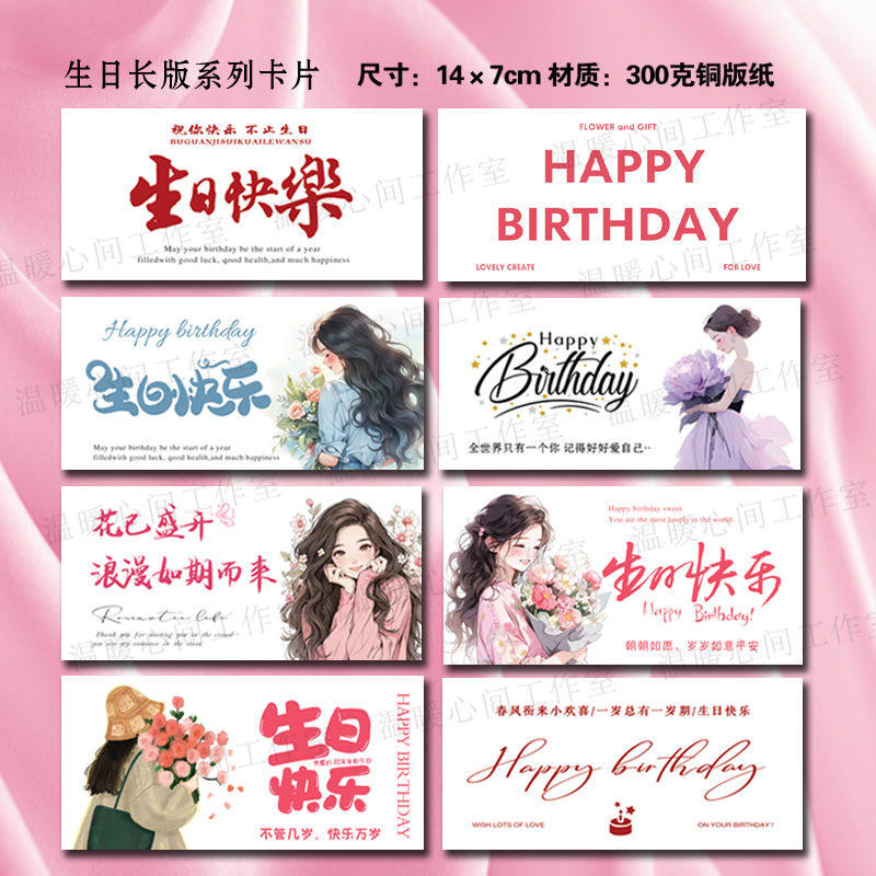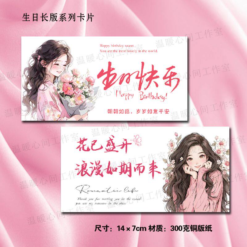 生日快乐卡片花店简约花束生日手礼物ins鲜花烘焙小清新花艺留言由