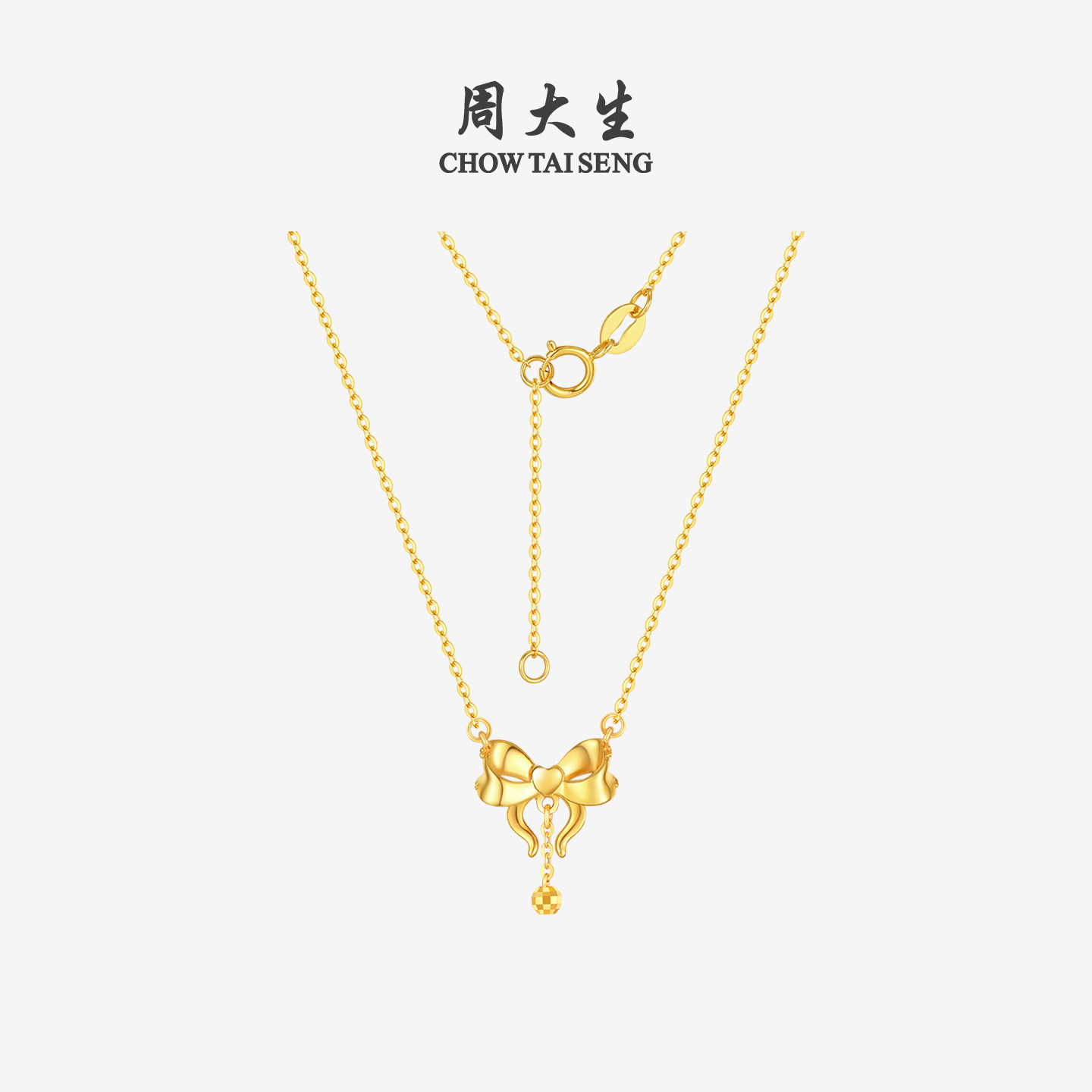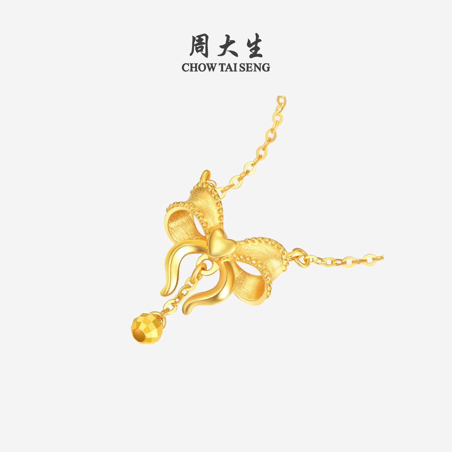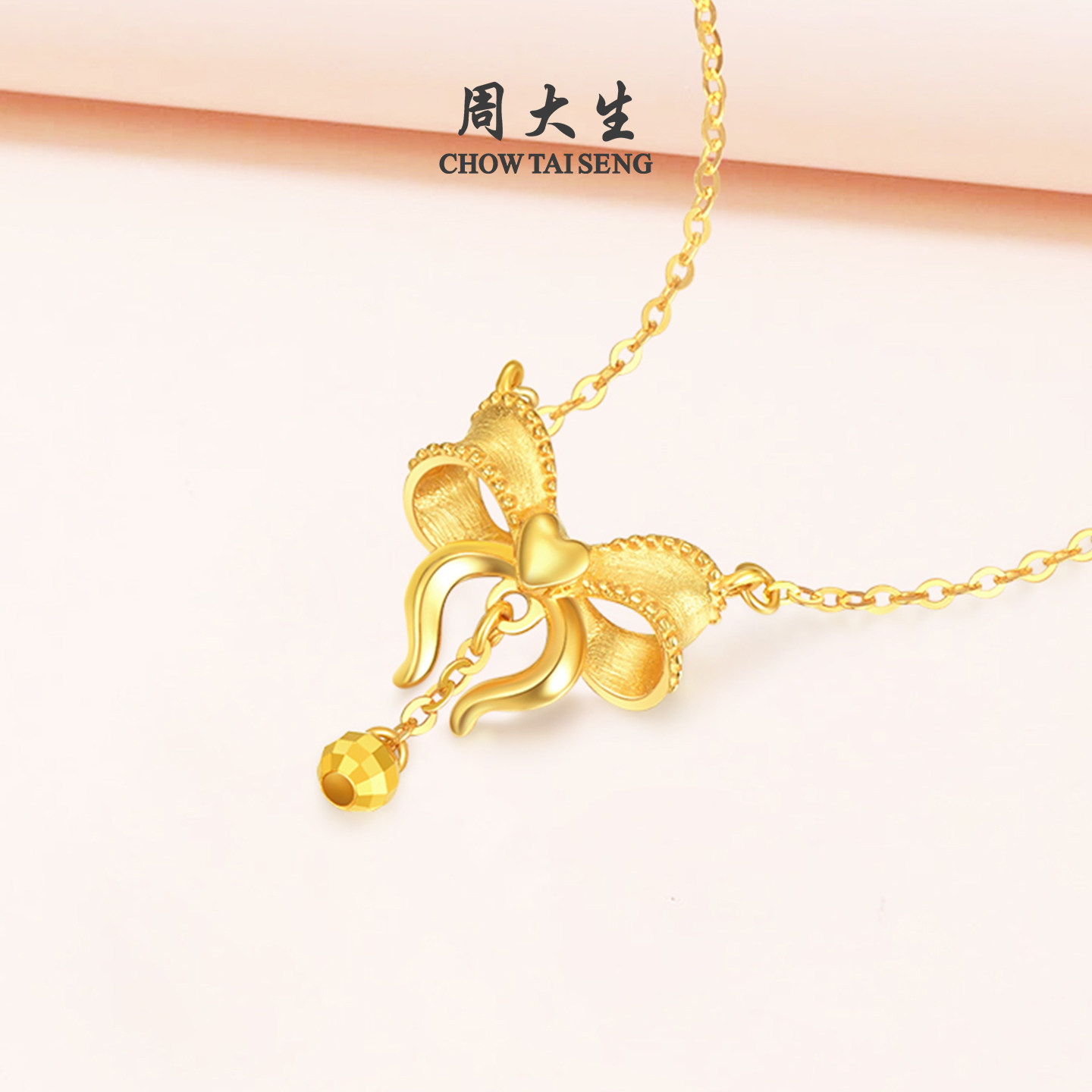 周大生黄18k金项链吊坠在逃公主蝴蝶结锁骨套链送女友生日礼物