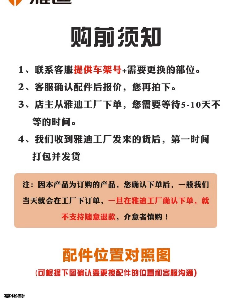 为您提供商品雅迪电动车配件前围大全边条外壳定制链接的详细介绍,