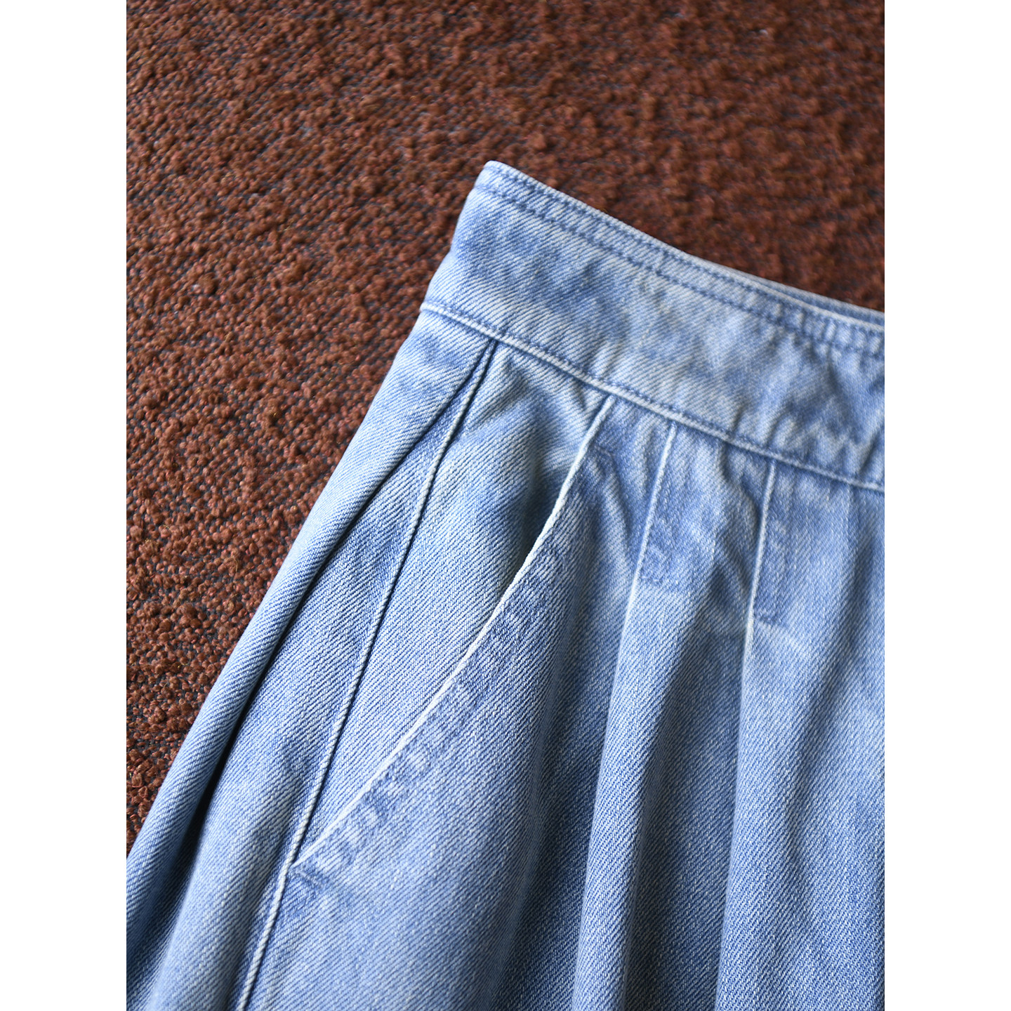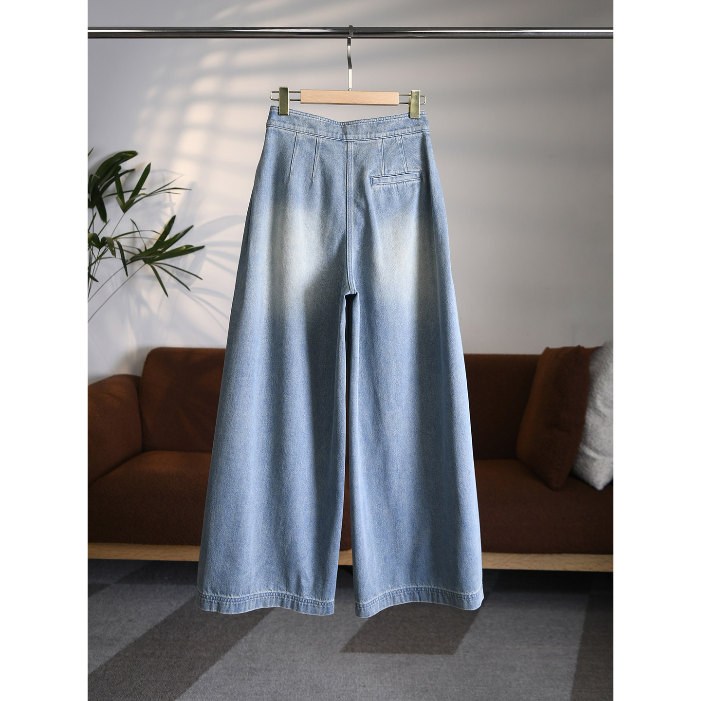 颖颖家 W1933 进口土耳其做旧复古渐变色压褶直筒阔腿中高腰牛仔裤