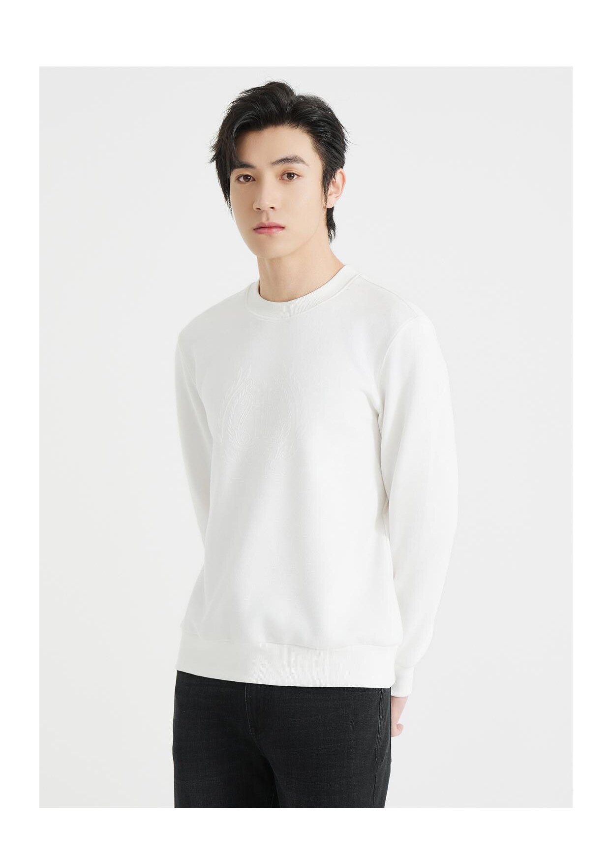 针织T恤休闲卫衣175 92A 利24QTX6031Y纯白T恤男圆领长袖 2026春秋由