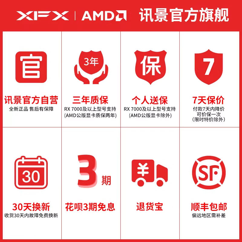 9070 XFX讯景Radeon 9070XT 游戏显卡amd电脑电竞AI 9070GRE