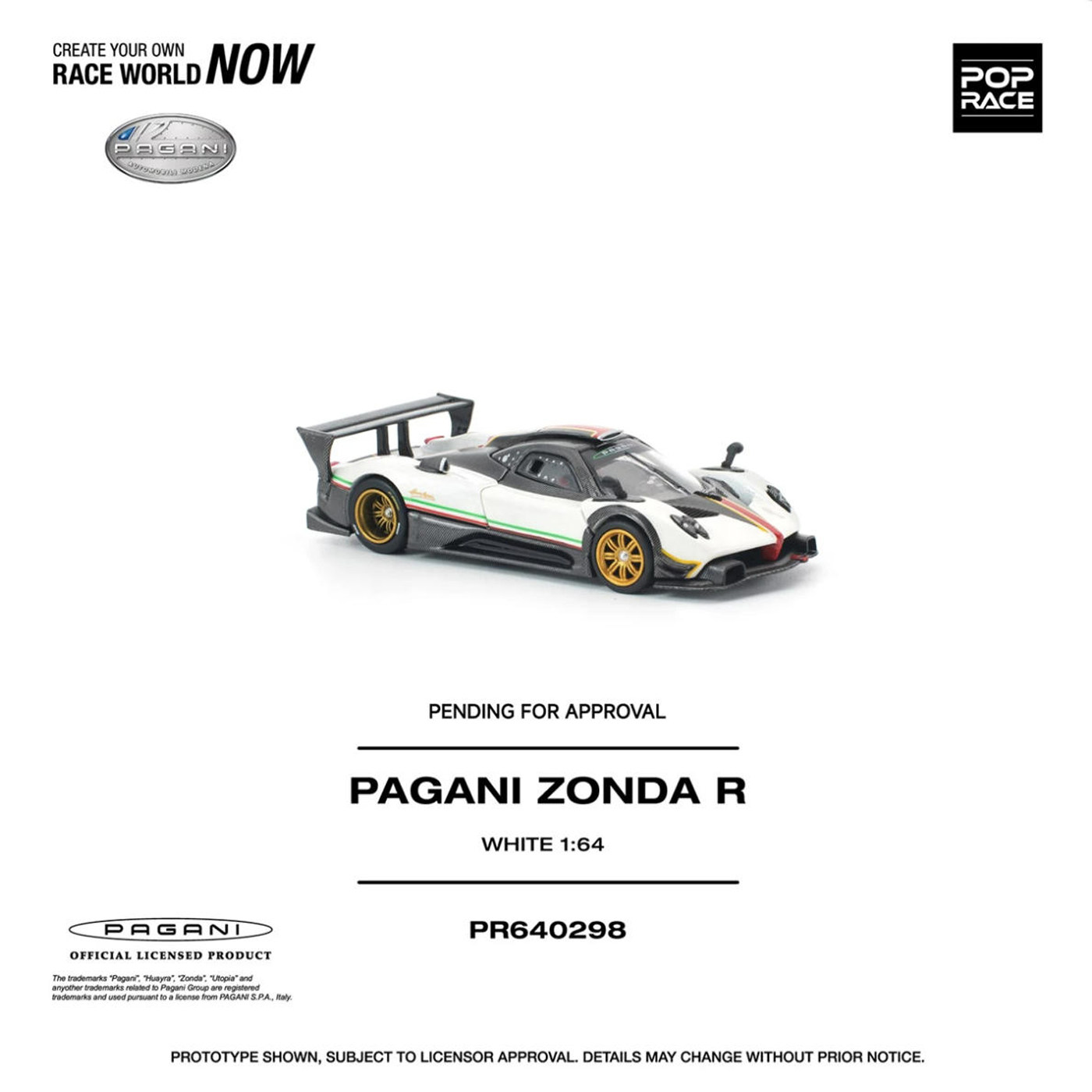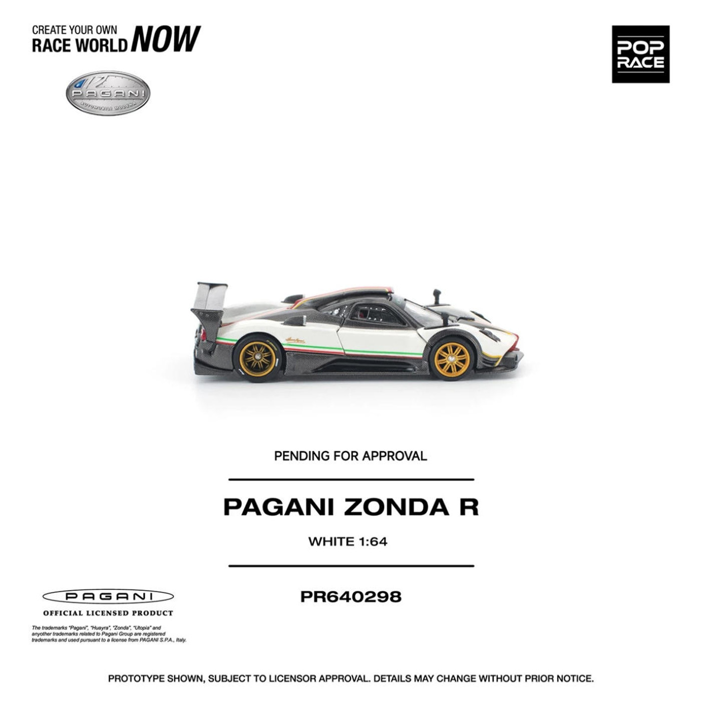 合金汽车模型收藏 Pop 白色 开盖版 Race 帕加尼宗塔Zonda