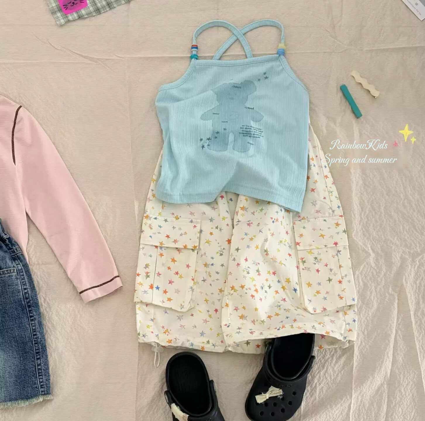 裤 儿童套装 2026夏款 女童百搭卡通小熊吊带星星工装 两件套洋气潮款