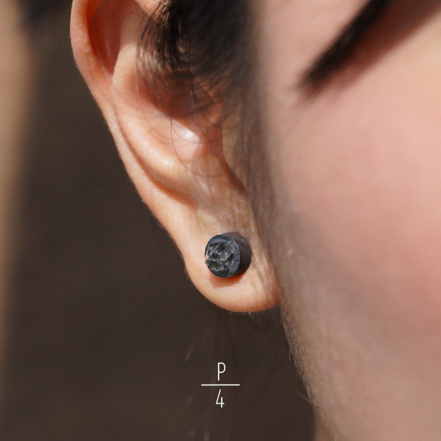 PARTS FOUR Stud尖晶镶嵌纯银耳钉 法国设计师原创小众黑色