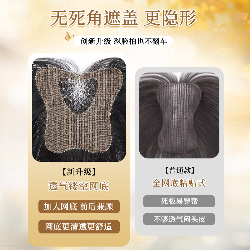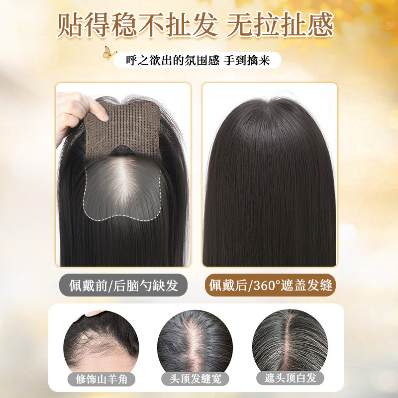 高颅顶假发片贵气御姐大光明头顶蓬松垫发片隐形增发量无痕直发片