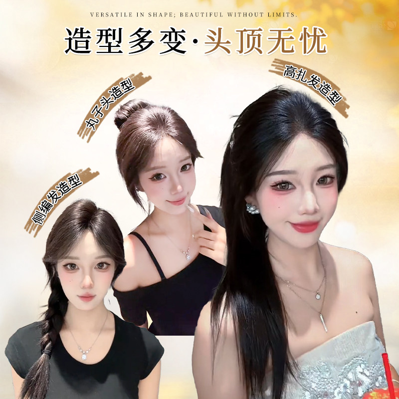 高颅顶假发片增发量蓬松半扎发头顶垫发片隐形无痕增厚云感直发片