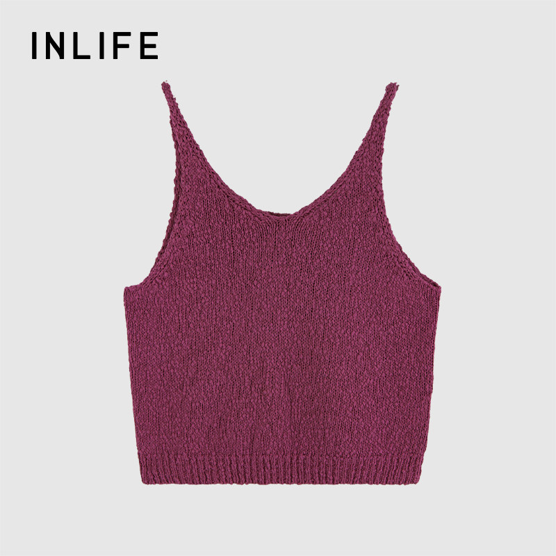 毛针织衫 伊纳芙短款 内搭打底衫 修身 纯棉V领吊带背心女26春季 新款