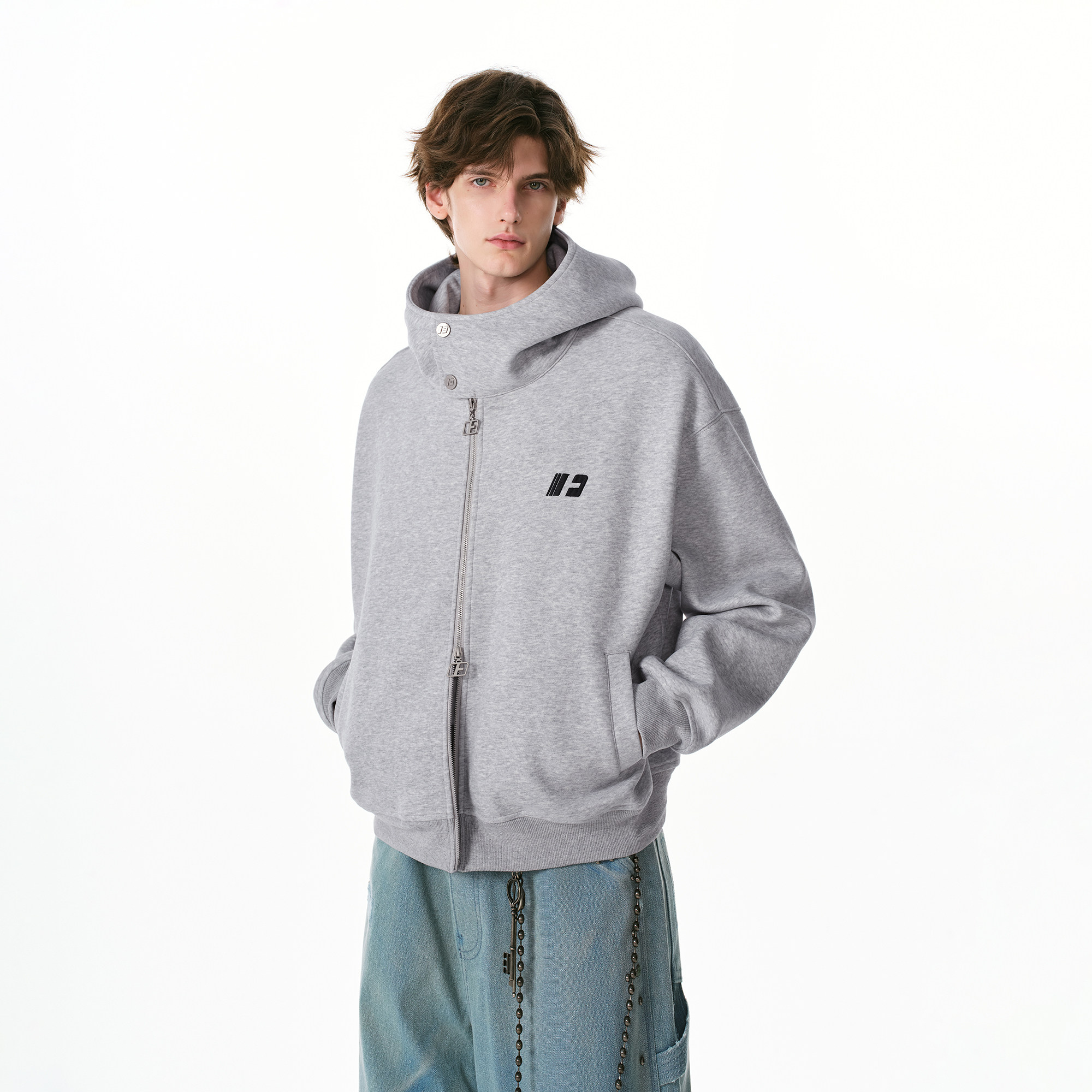 FORNINES双拉链微短款 新款 高领开衫 外套 连帽重磅卫衣男女2026春季