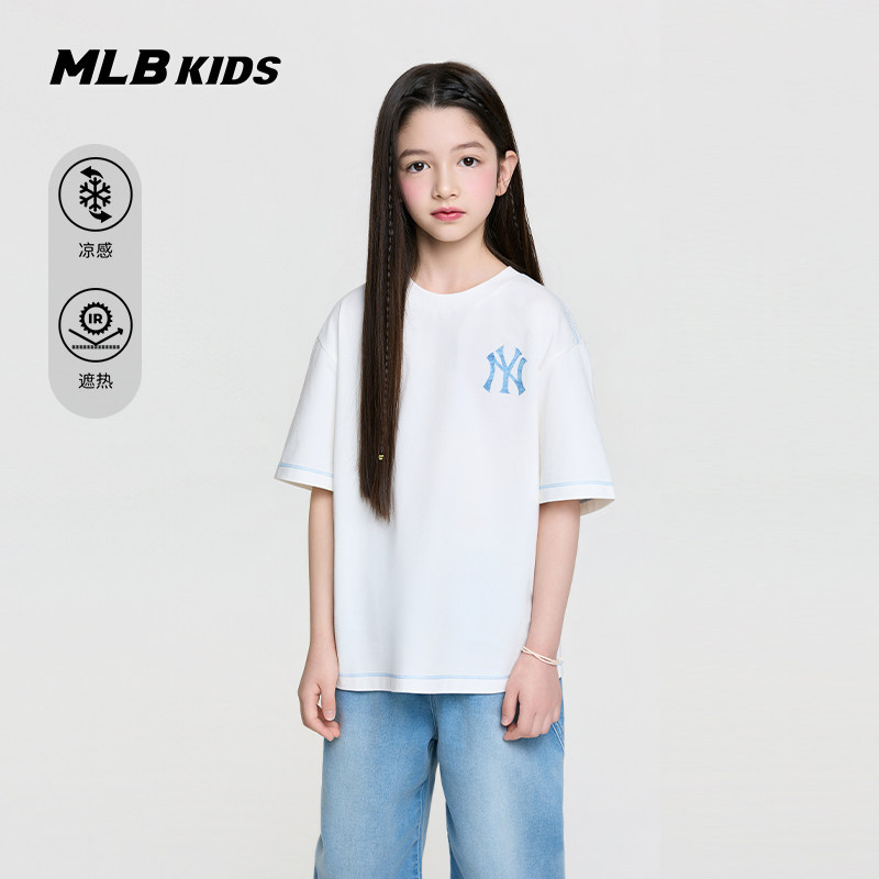 MLB儿童官方男女童街头复古凉感简约圆领背标老花T恤26春夏新款由