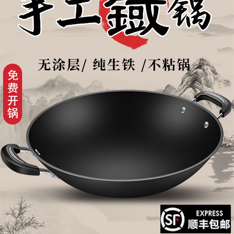 炒锅家用不粘锅无涂层燃气灶适用 章丘炒菜锅传统铁锅官方旗舰老式