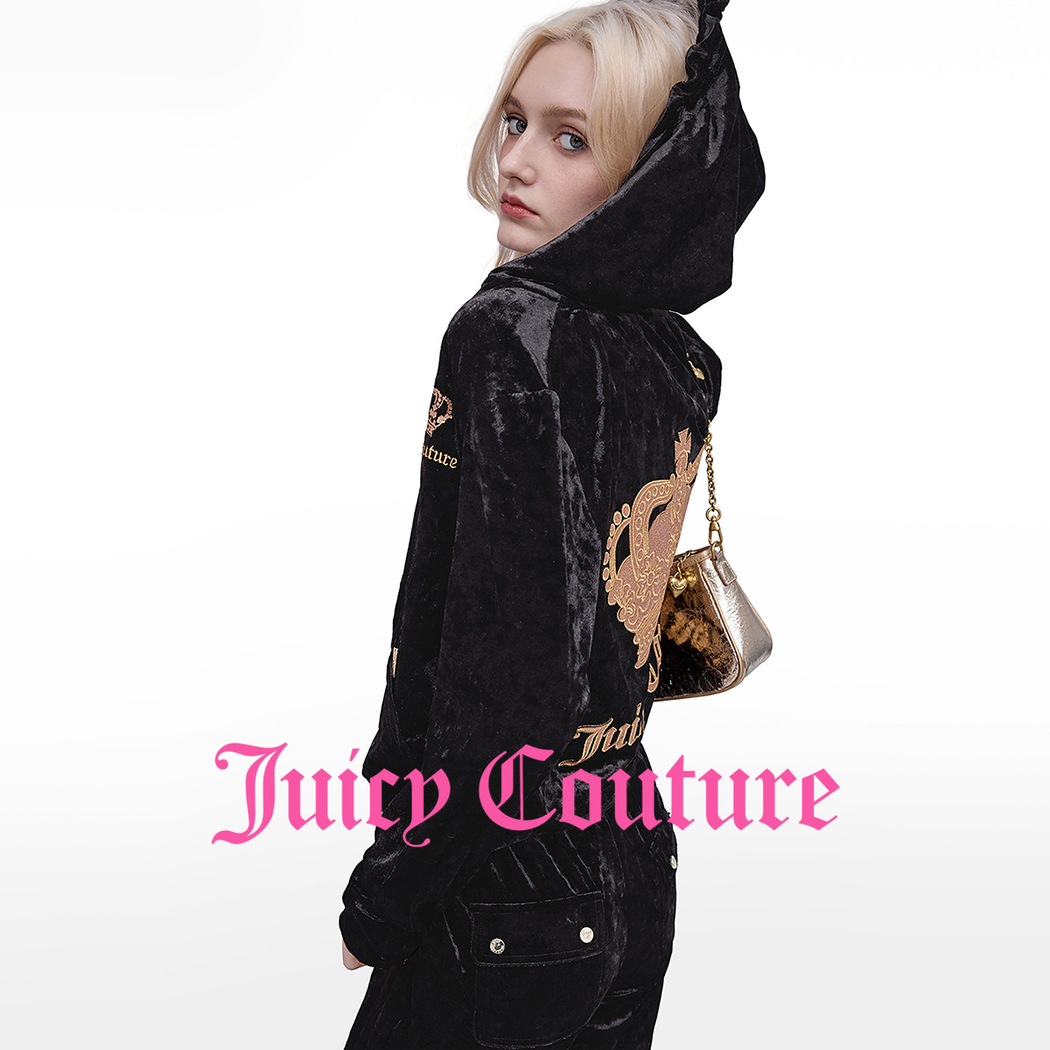 Juicy 高亮钻石绒 外套女26春夏新款 黑色丝绒上衣 Couture橘滋