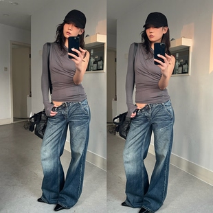 现货 WEEEECHAN次日早晨 不对称抽褶修身 设计感斜肩T恤 易梦玲同款