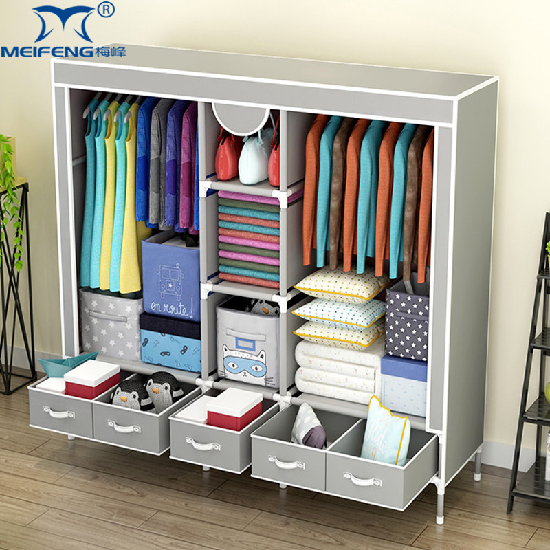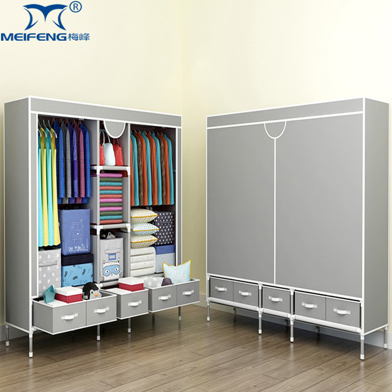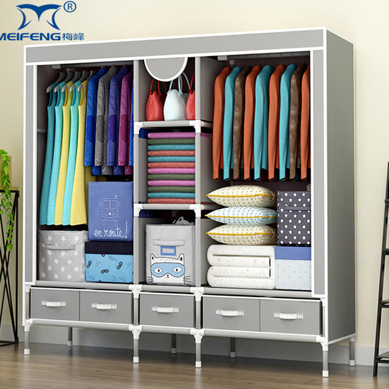 布衣柜出租房收纳结实耐用经济型衣橱 简易衣柜家用卧室全钢架组装