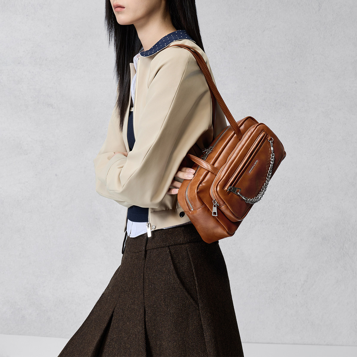CK2 20671897休闲学院风链条单肩腋下包 新款 CHARLES&KEITH26春季由