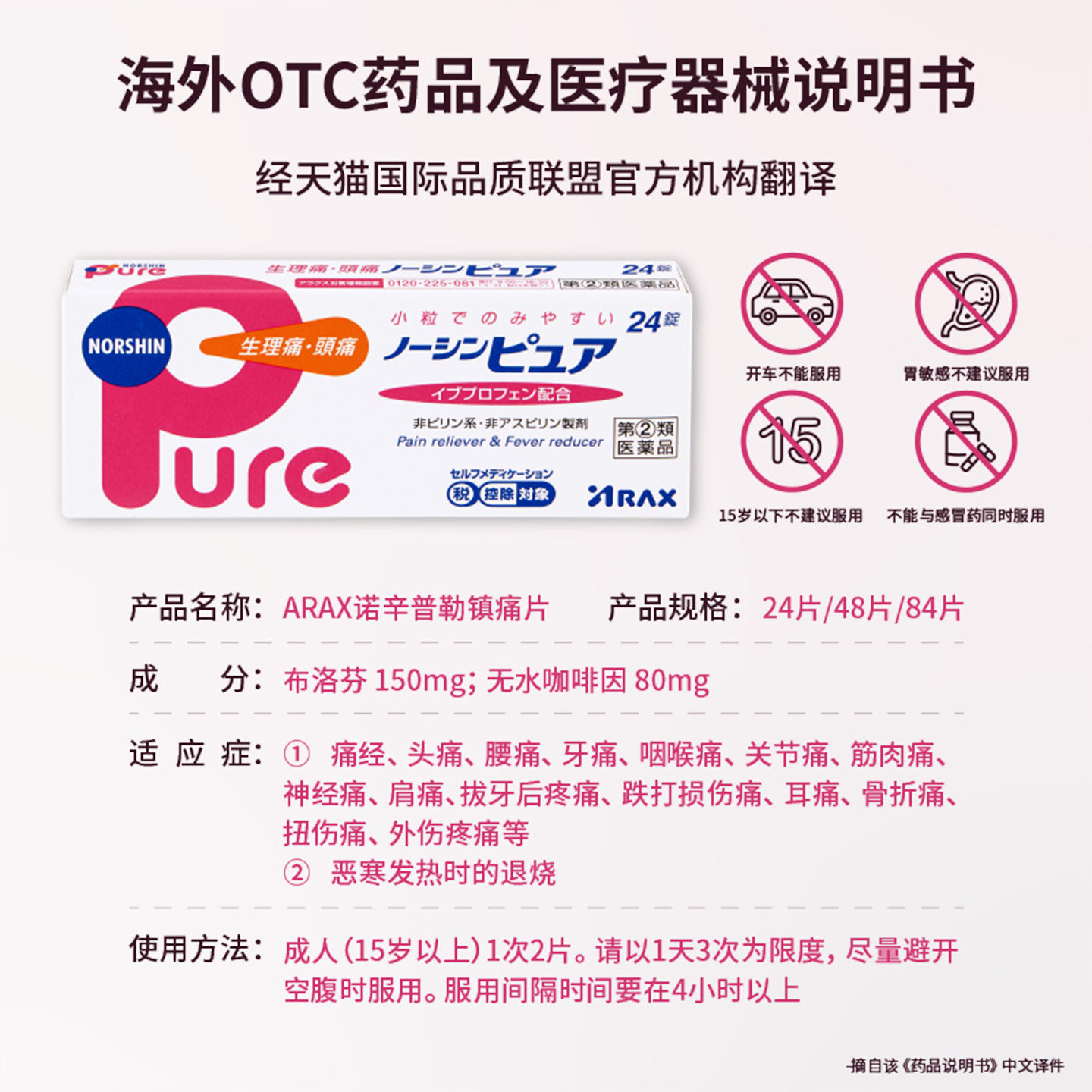 为您提供商品日本ARAX止疼止痛药Pure姨妈痛经痛肌肉痛头痛布洛芬退烧牙痛发热的详细介绍,