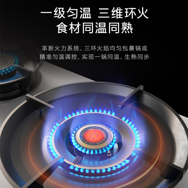 煤气灶家用双灶 熄火保护液化天燃气炉具 九腔猛火5.2KW不锈钢台式