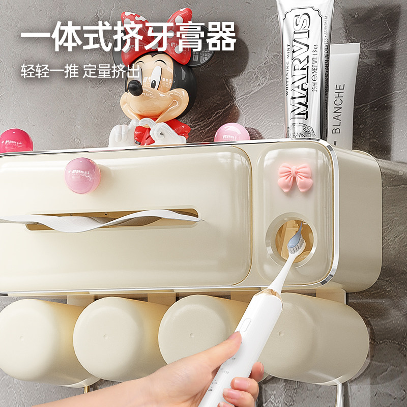 刷牙杯子可爱装 饰收纳盒 免打孔一体漱口杯挂墙式 牙刷置物架壁挂式