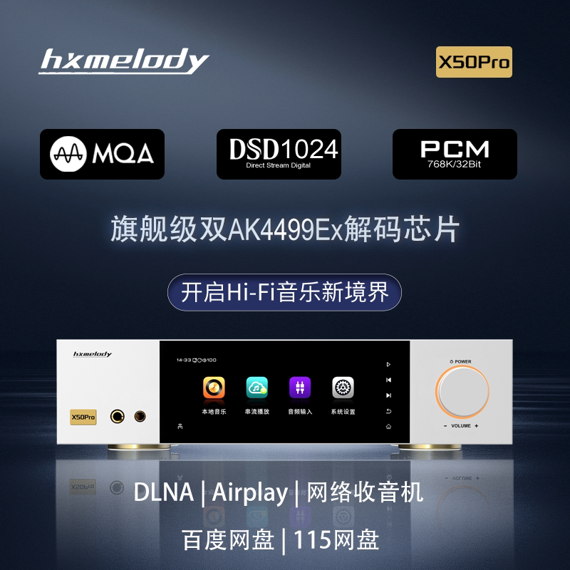 串流媒体蓝牙DLNA触摸 现货红芯X50pro母带音乐播放器双ak4499解码由