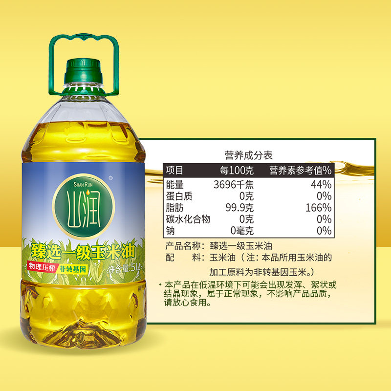 为您提供商品家用食用油物理压榨非转基因烹饪用油 山润臻选一级玉米油5L桶装的详细介绍,