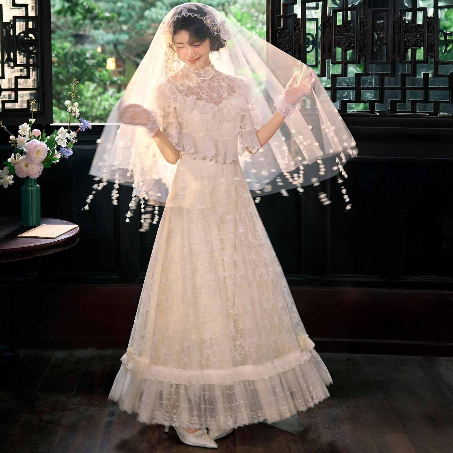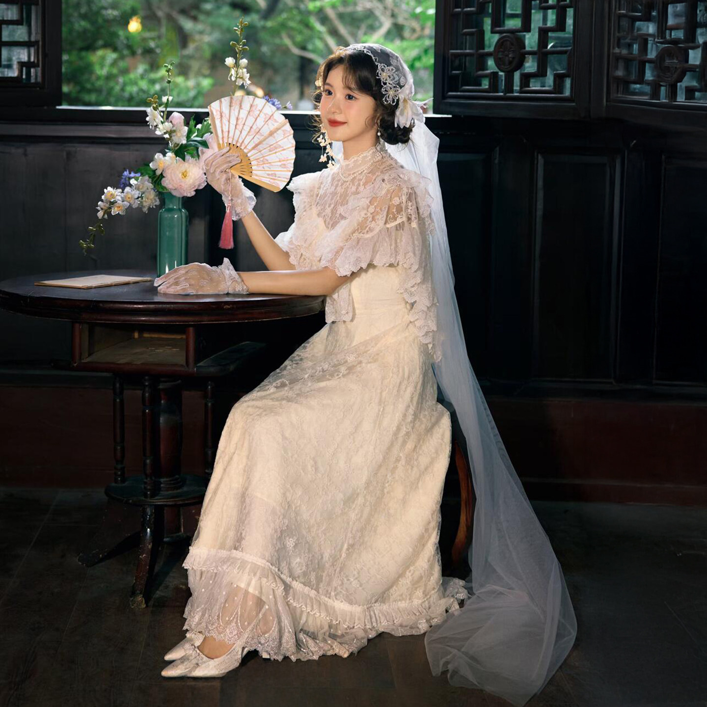 影楼主题服装 情侣写真外景拍照长礼服园林复古风旅拍蕾丝婚纱 新款由