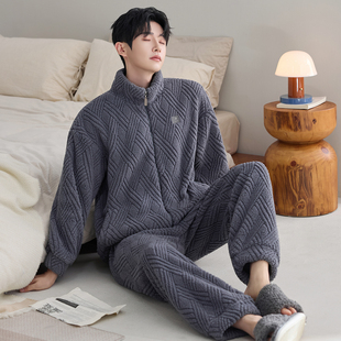 法兰绒家居服男款 男士 睡衣冬季 珊瑚绒加厚加绒保暖秋冬款 拉链套装由