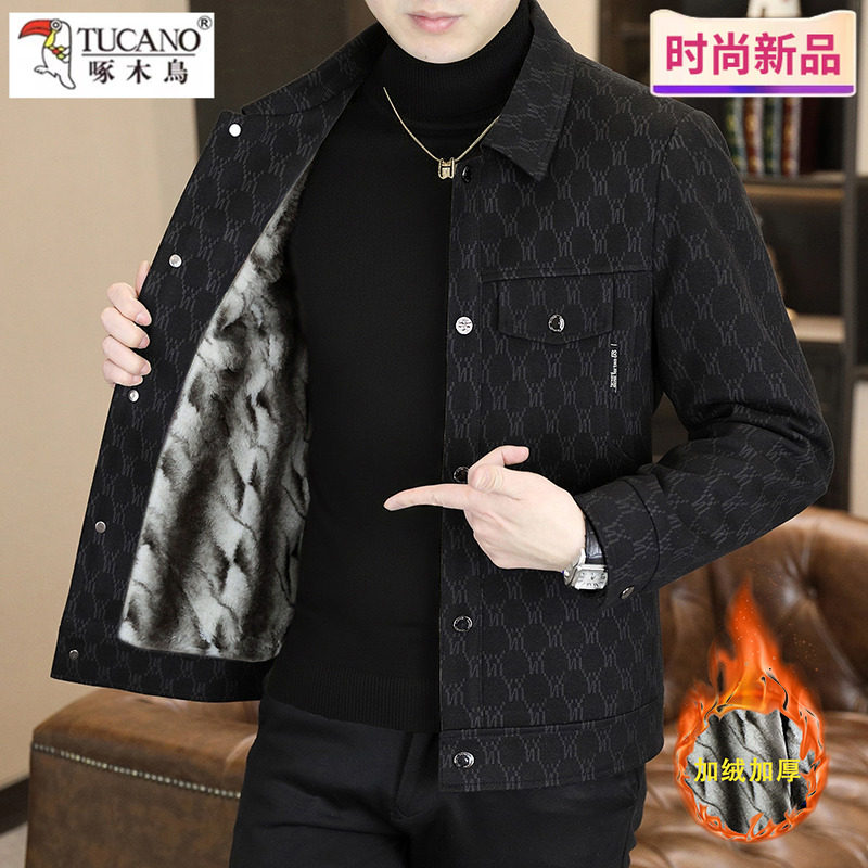 夹克时尚 休闲字母加绒加厚保暖中青年帅气外套男 新款 啄木鸟秋冬季