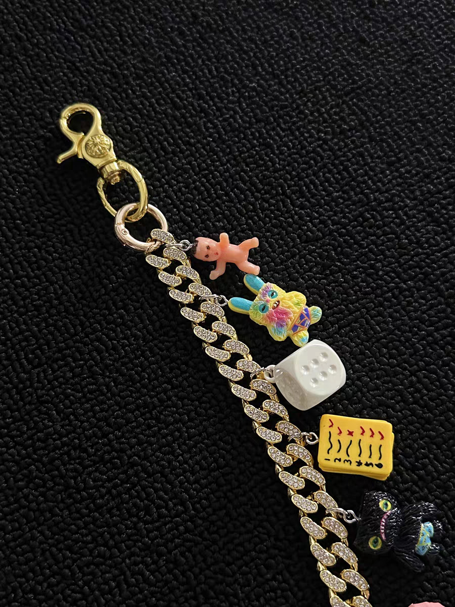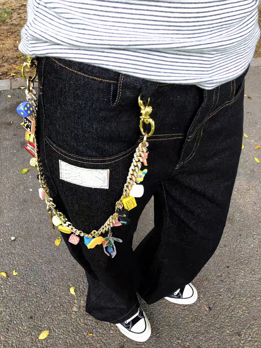 Vanan多巴胺系列金色镶钻古巴裤 秀场配饰穿搭单品ins风 链明星同款由