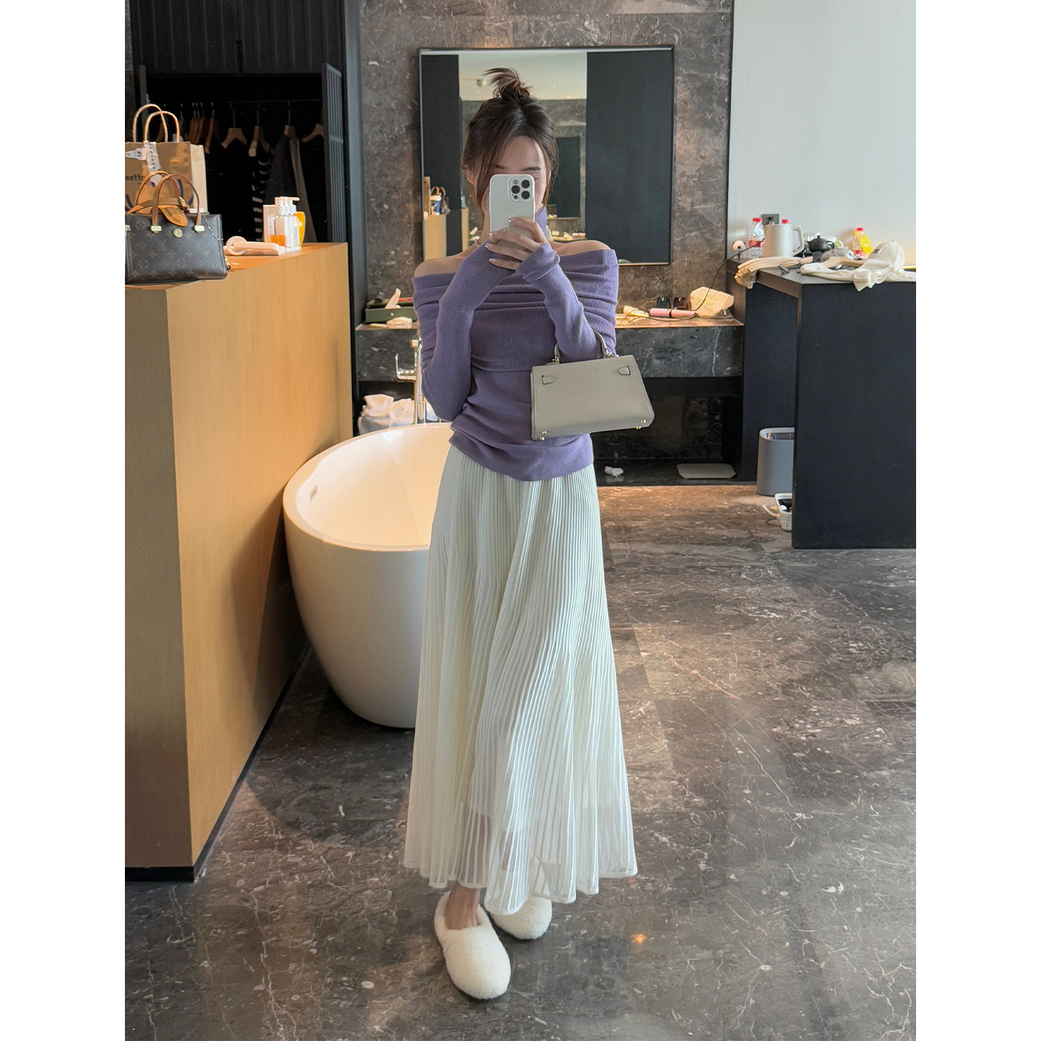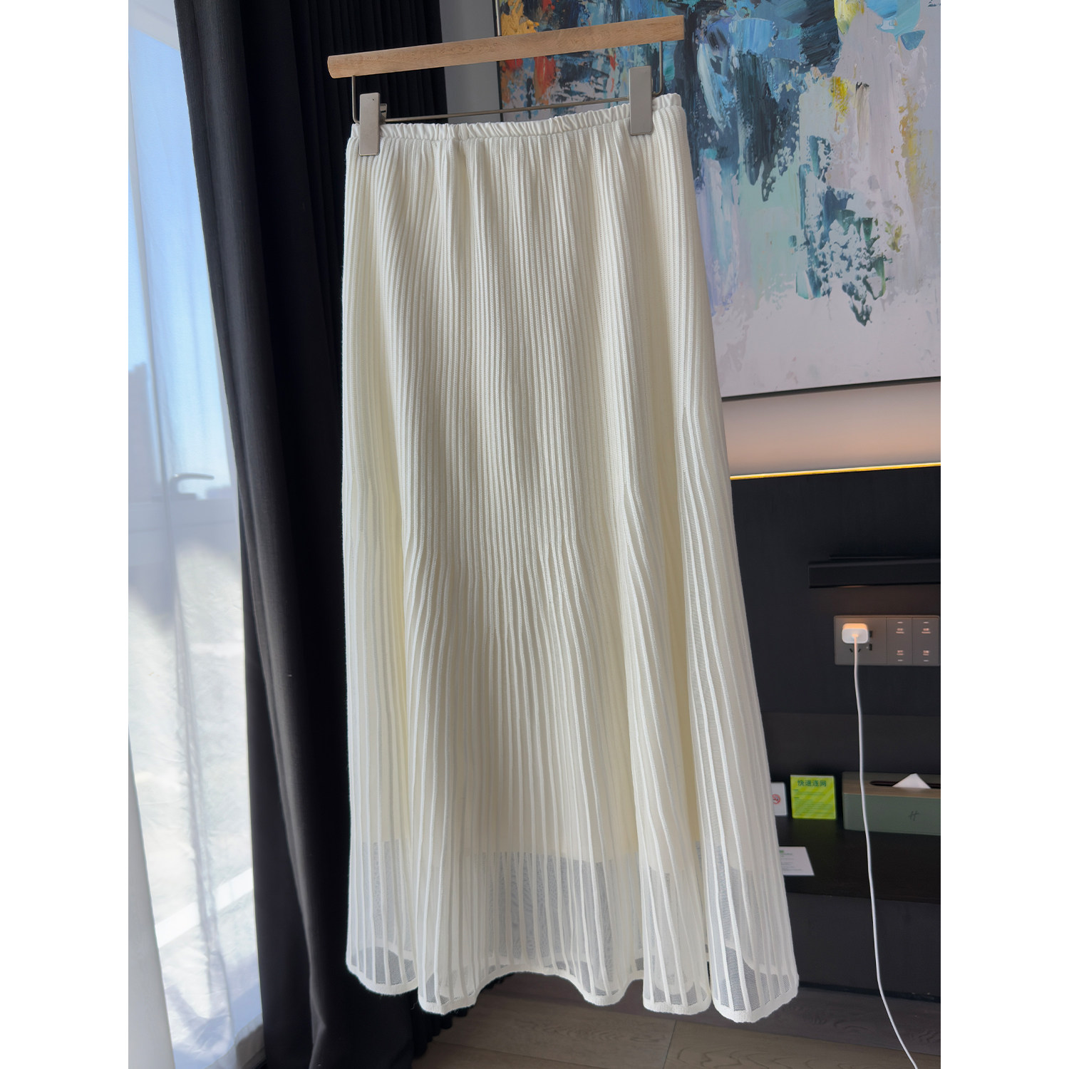 白色雪纺半身裙女中长款 A字伞裙大摆裙垂感百褶长裙子 2026夏新款