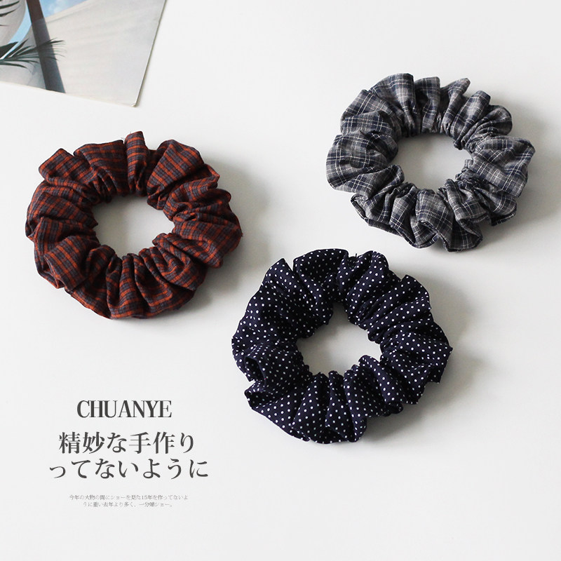川野法式 时尚 小众扎高马尾 发绳头饰发饰 波点格纹小肠发圈女新款