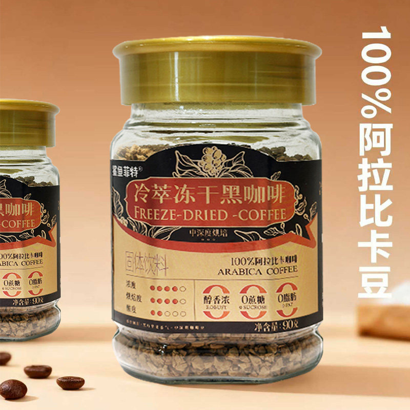 速溶云南小粒生椰拿铁 鲨鱼菲特冷萃冻干黑咖啡粉无蔗糖醇香冰美式
