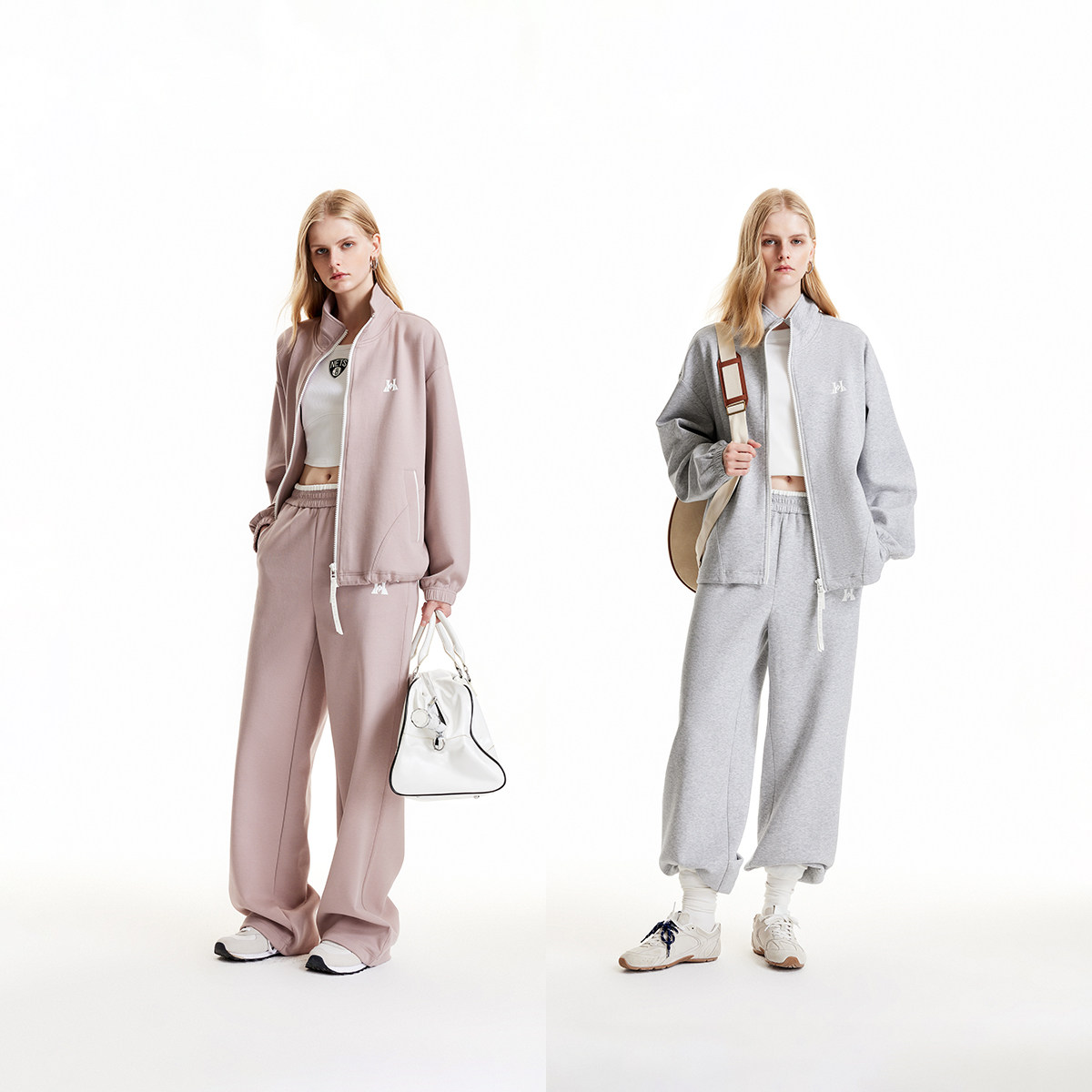 asomesome美式 女灰色修身 休闲松弛运动裤 子 黑色微喇直筒低腰卫裤