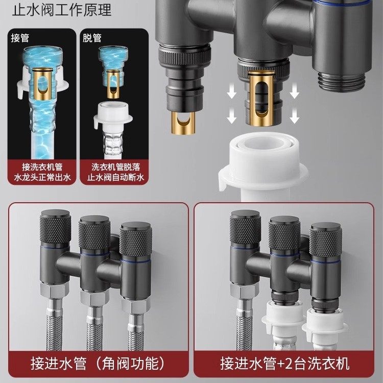 为您提供商品双出水洗衣机水龙头角阀一进二出专用双龙头自动止水阀一分二接头的详细介绍,