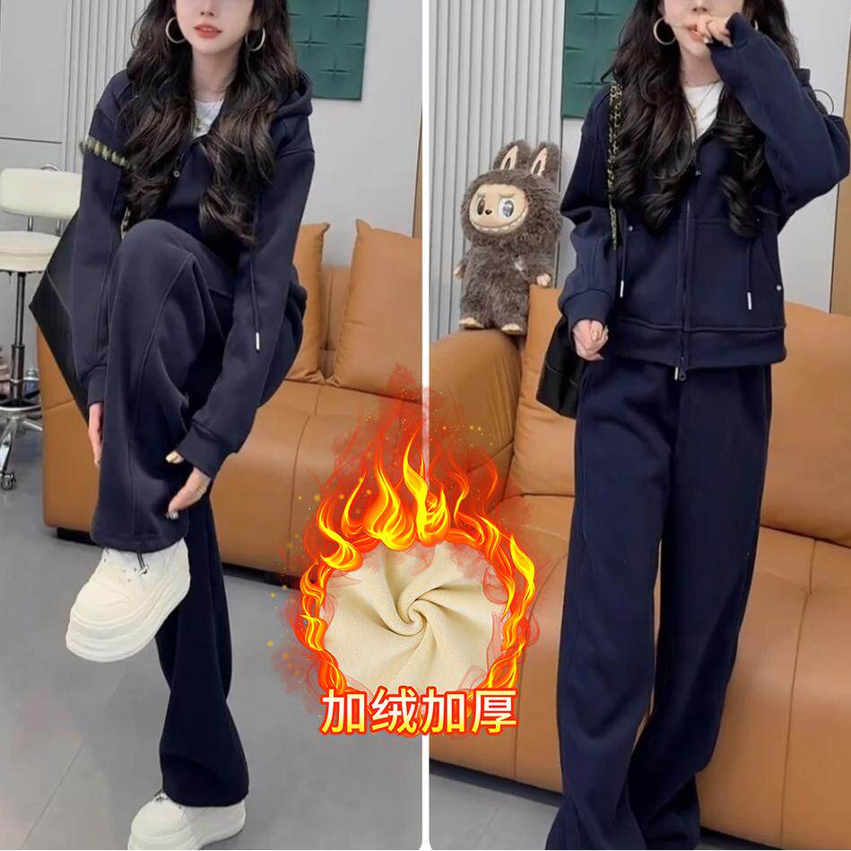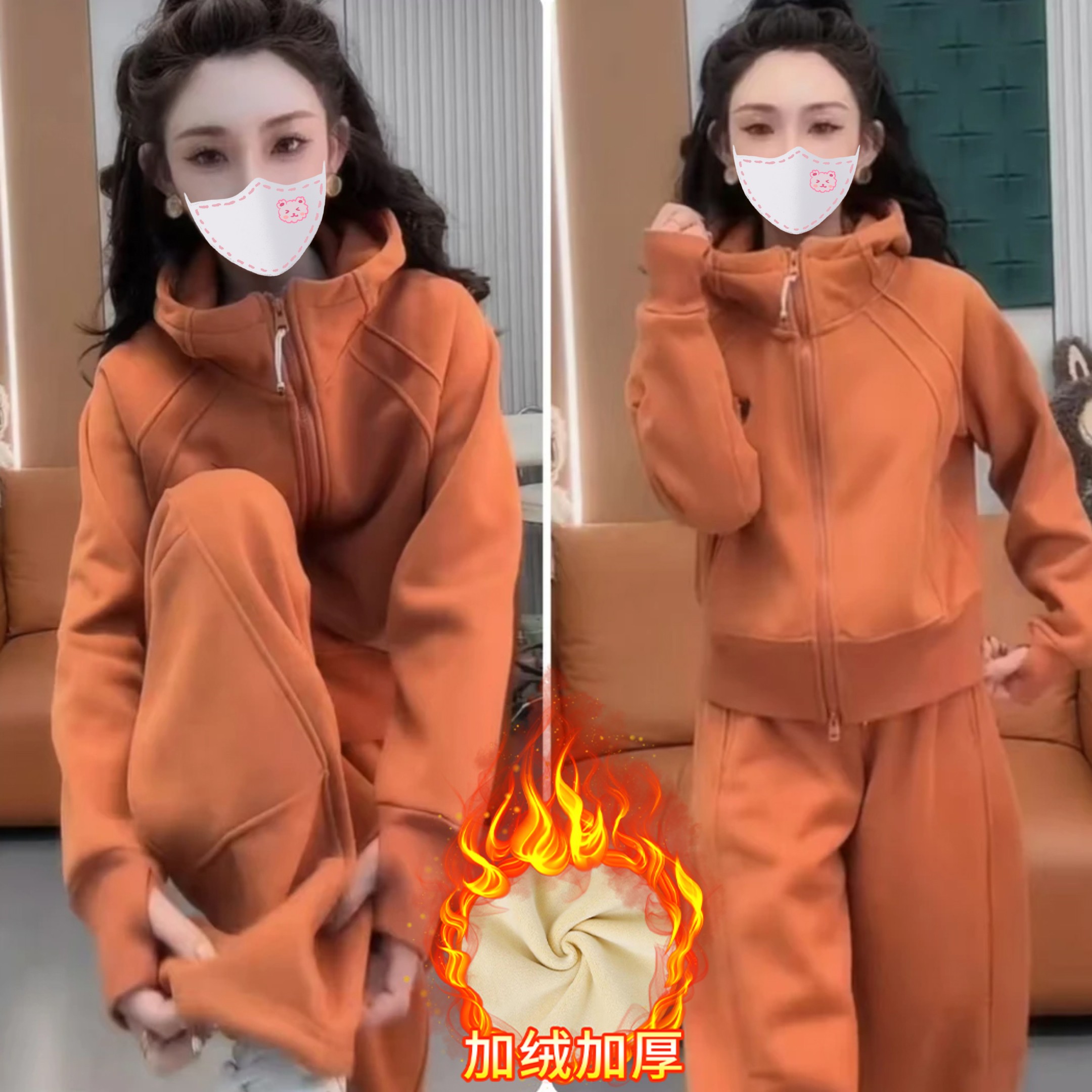 德绒加绒加厚休闲运动套装 新款 洋气时尚 显瘦连帽两件套 女2025冬季