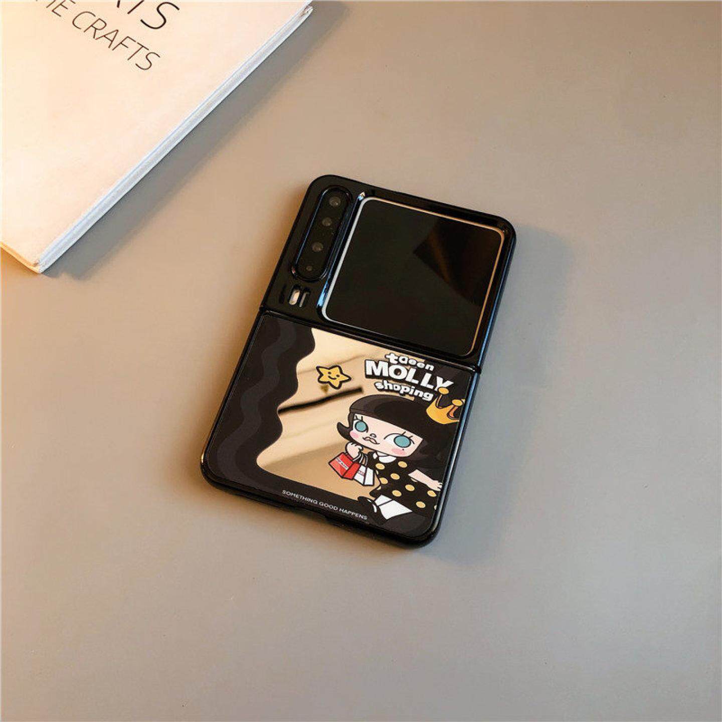 镜子莫莉购物适用华为purax手机壳pocket2小米mixflip硬novaflips三星zflip764卡通p50光面oppofindn3n2女w25