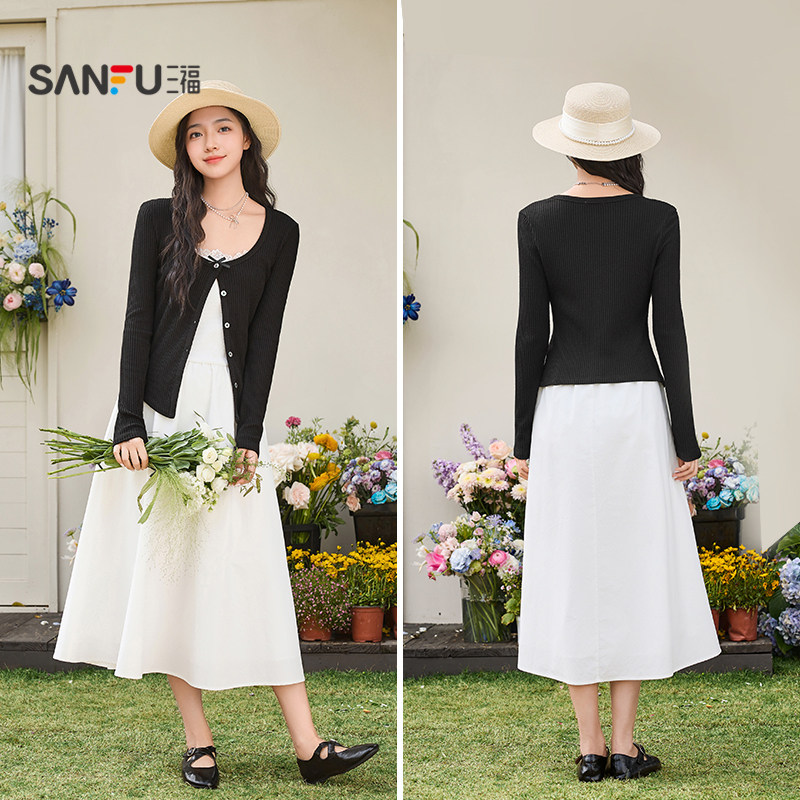 气质开衫 三福连衣裙套装 2026新款 春季 披肩白色吊带长裙两件套女装