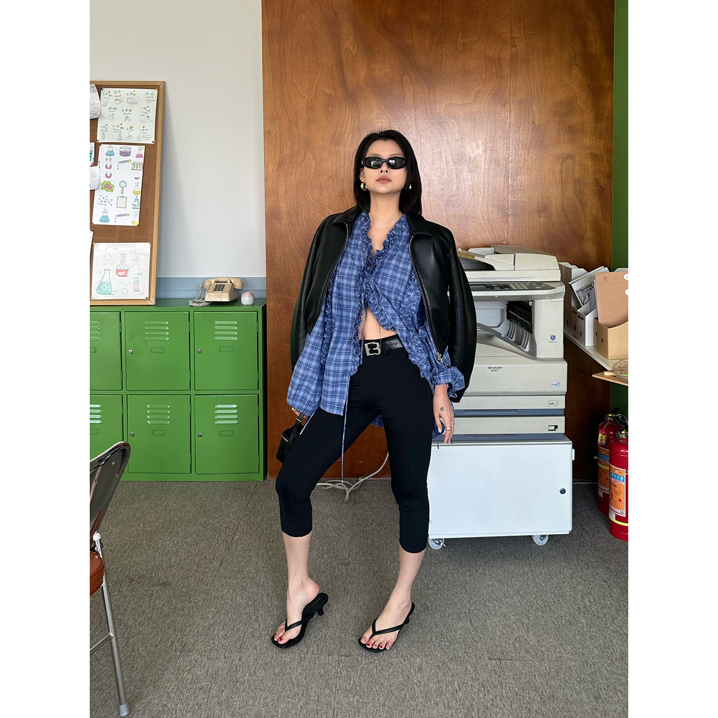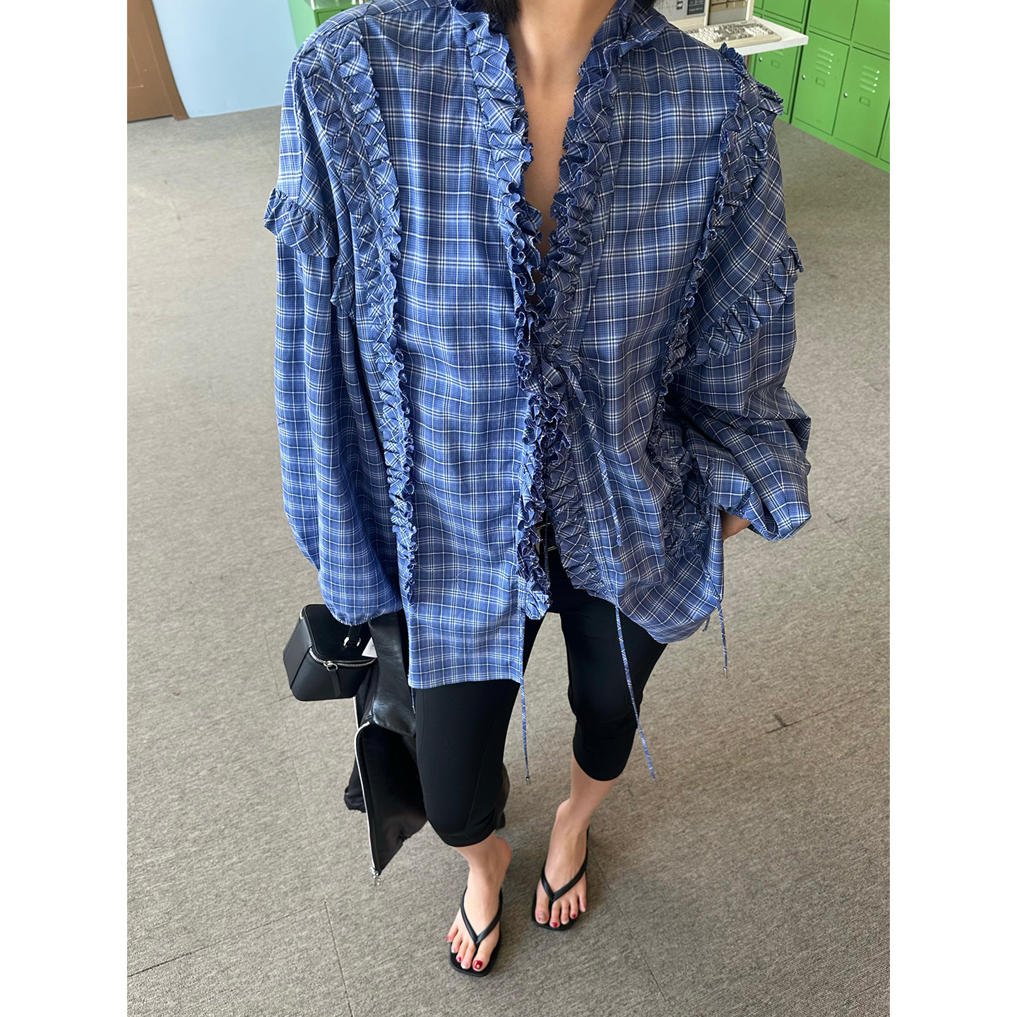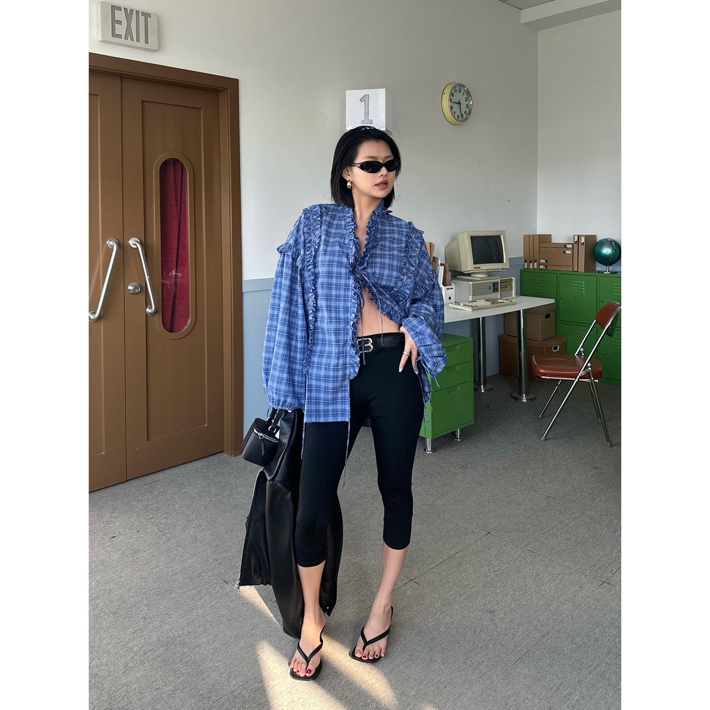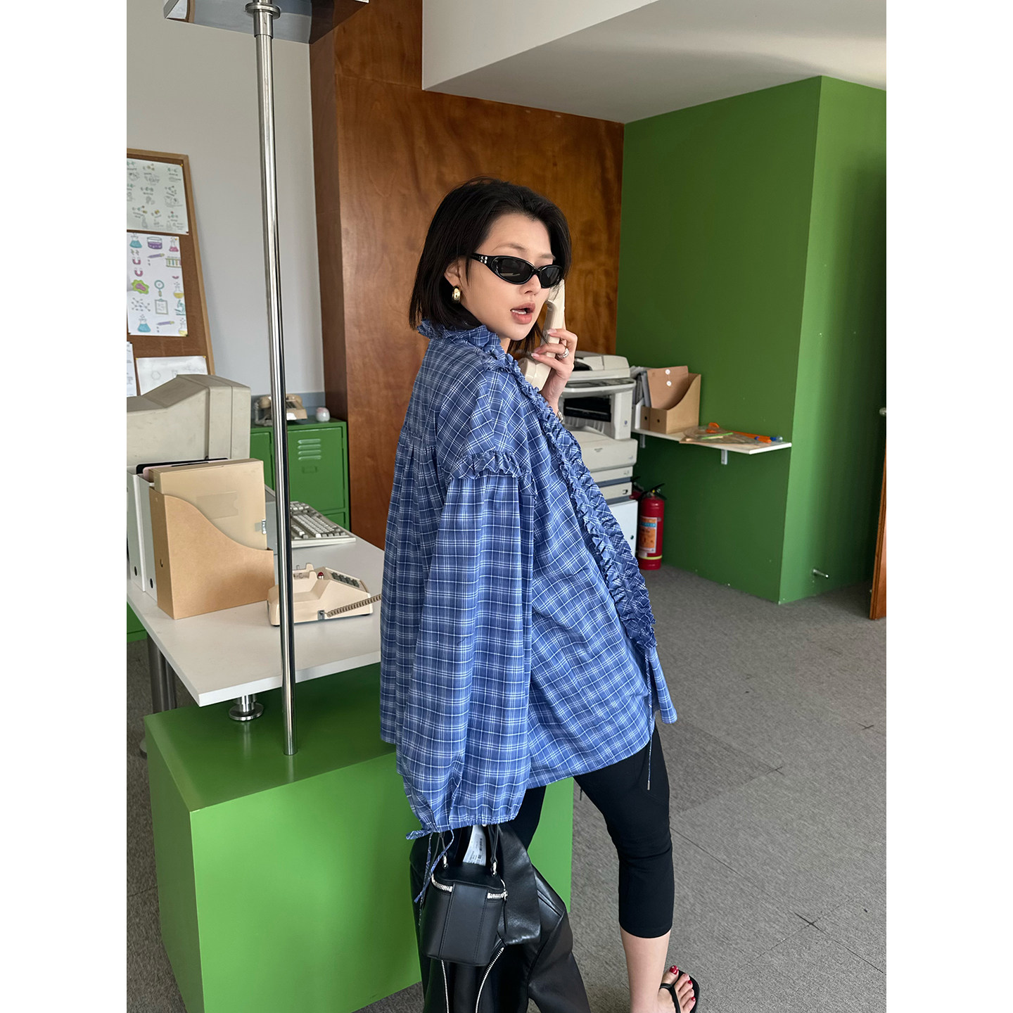宽松格纹抽皱花边衬衫 SOLSOL 设计师品牌26春夏新品 ANDAHALF